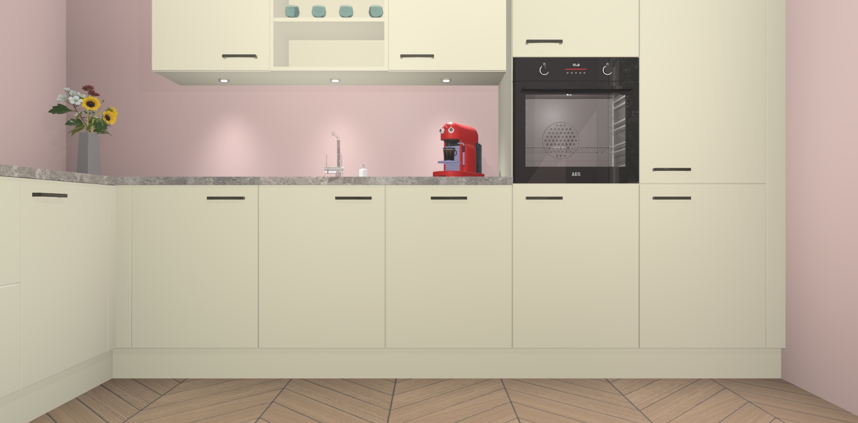 Inclusief plinten, stelpoten en werkblad