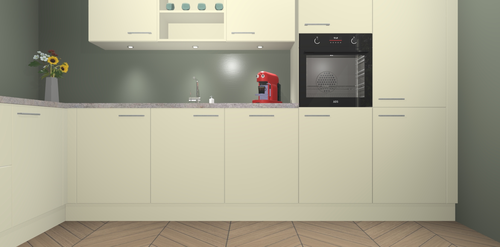 Inclusief plinten, stelpoten en werkblad