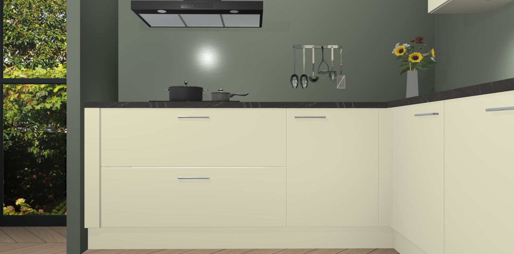 In deze box zijn alle kleuren verzameld van de deuren en werkbladen. Vraag de gratis kleurenbox aan en kijk thuis rustig verder!