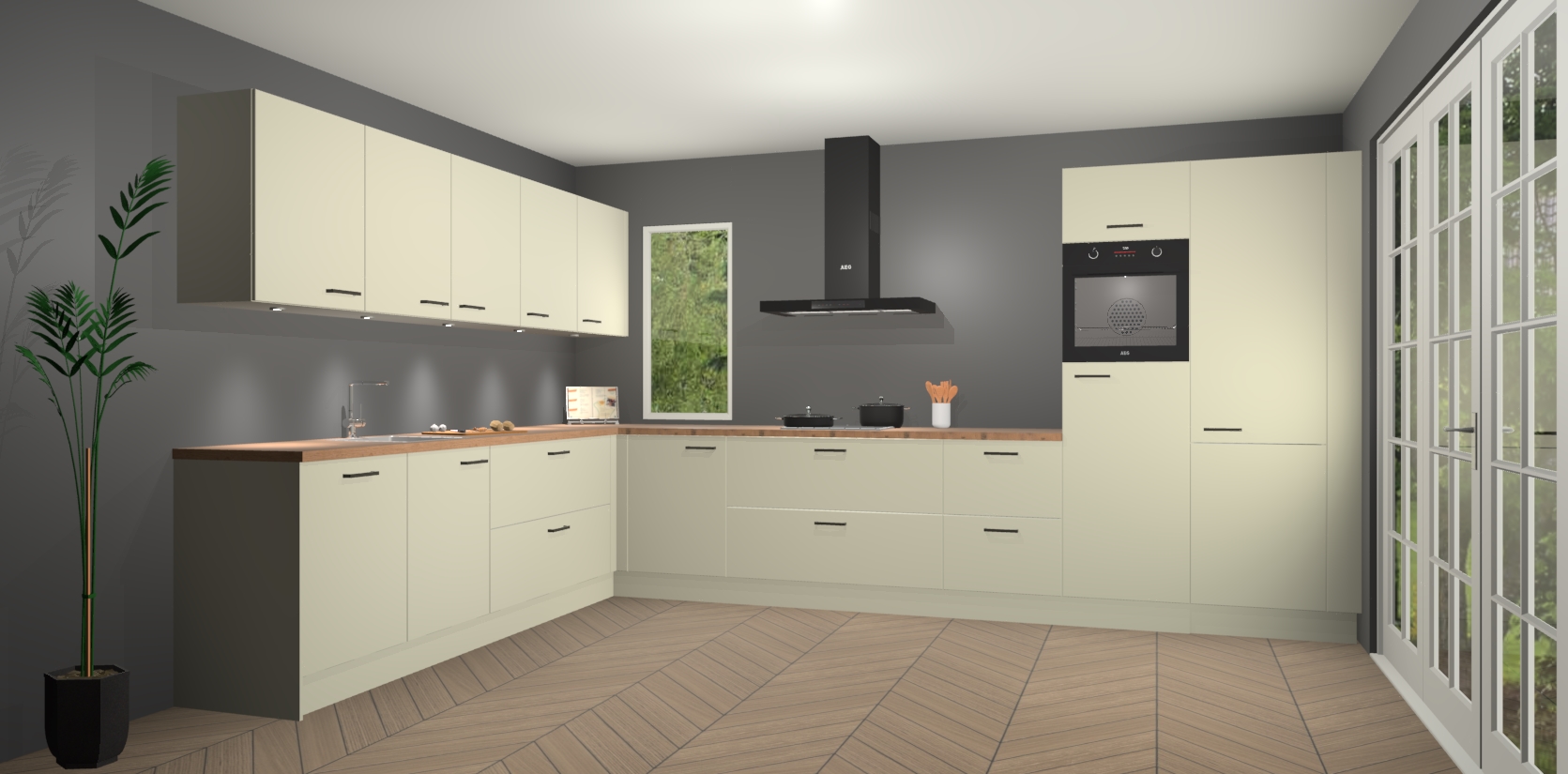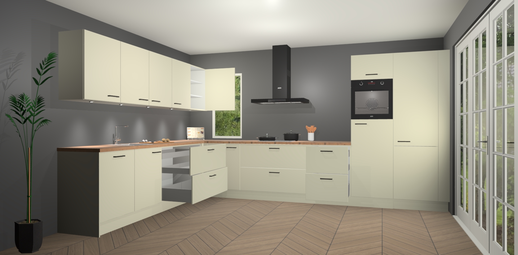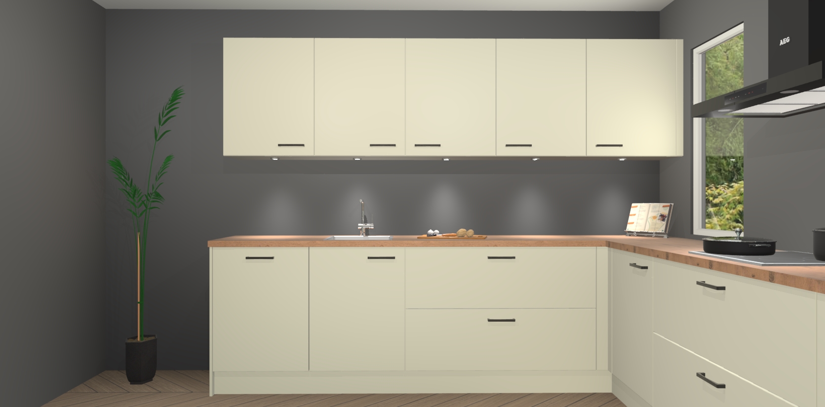Inclusief plinten, stelpoten en werkblad