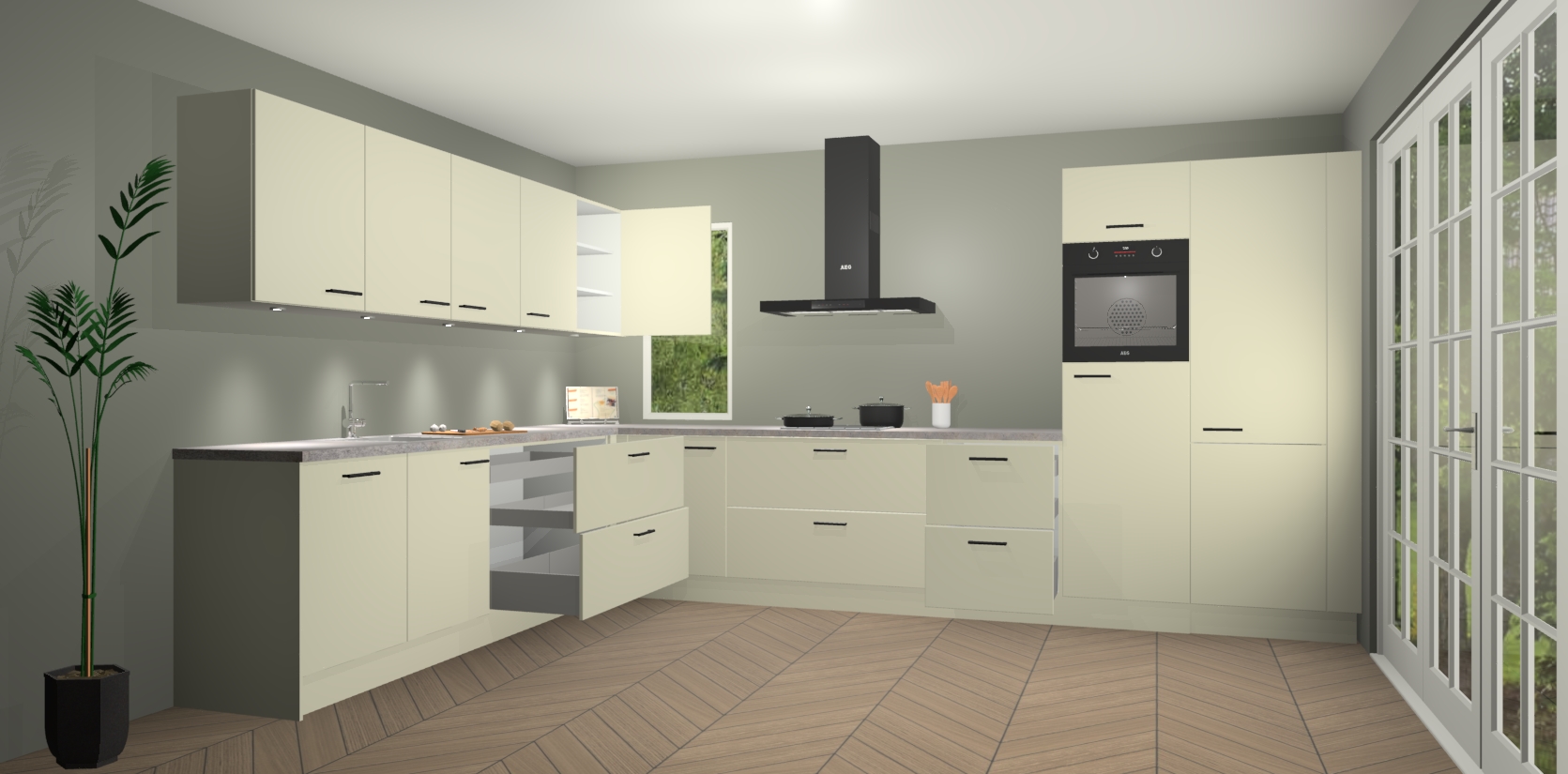 Inclusief plinten, stelpoten en werkblad