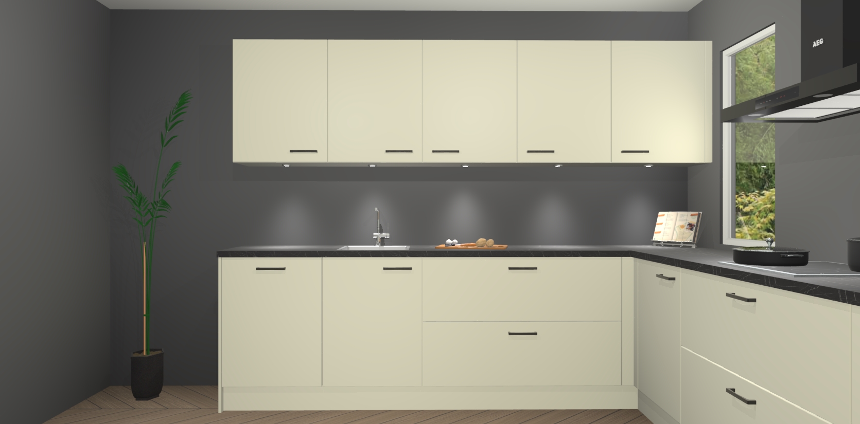 Inclusief plinten, stelpoten en werkblad