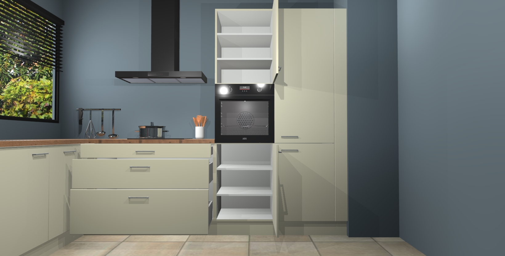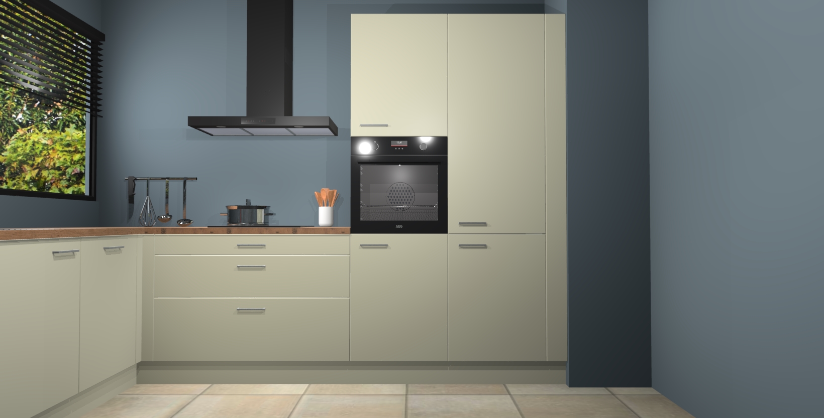 Met een modern, tijdloos design en ruime opslagruimte, zult u zich in no-time thuis voelen in uw nieuwe keuken. Uw leven wordt eenvoudiger met de soft-close deuren die voor het ultieme stille comfort zorgen - geen geluid dat u stoort terwijl u kookt. Ook is de keuken voorzien van 5 ingebouwde apparaten: een oven, inductie kookplaat, afzuigkap, vaatwasser en koelkast. Deze kunnen gemakkelijk na bestelling worden bijgewerkt naar AEG - waardoor uw luxe ervaring compleet is.