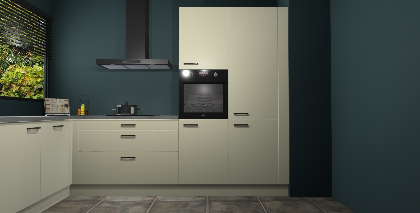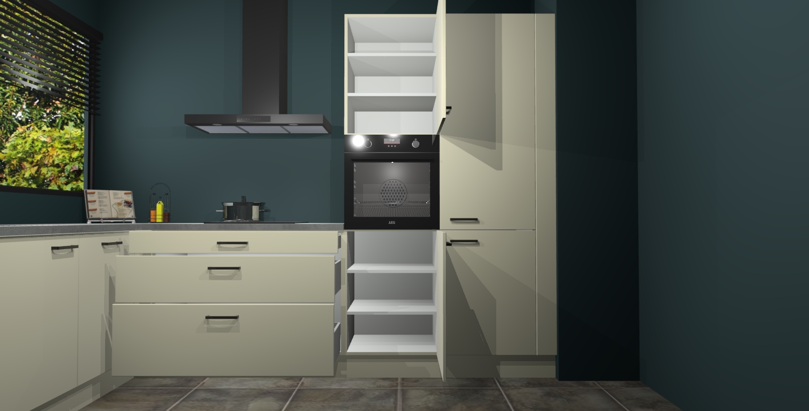 Met een modern, tijdloos design en ruime opslagruimte, zult u zich in no-time thuis voelen in uw nieuwe keuken. Uw leven wordt eenvoudiger met de soft-close deuren die voor het ultieme stille comfort zorgen - geen geluid dat u stoort terwijl u kookt. Ook is de keuken voorzien van 5 ingebouwde apparaten: een oven, inductie kookplaat, afzuigkap, vaatwasser en koelkast. Deze kunnen gemakkelijk na bestelling worden bijgewerkt naar AEG - waardoor uw luxe ervaring compleet is.