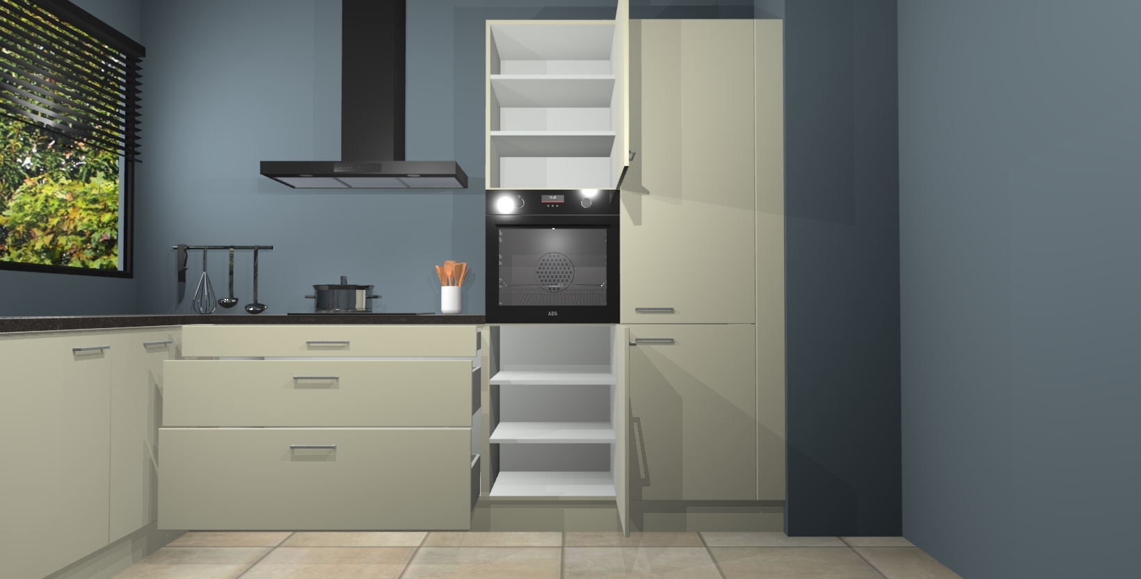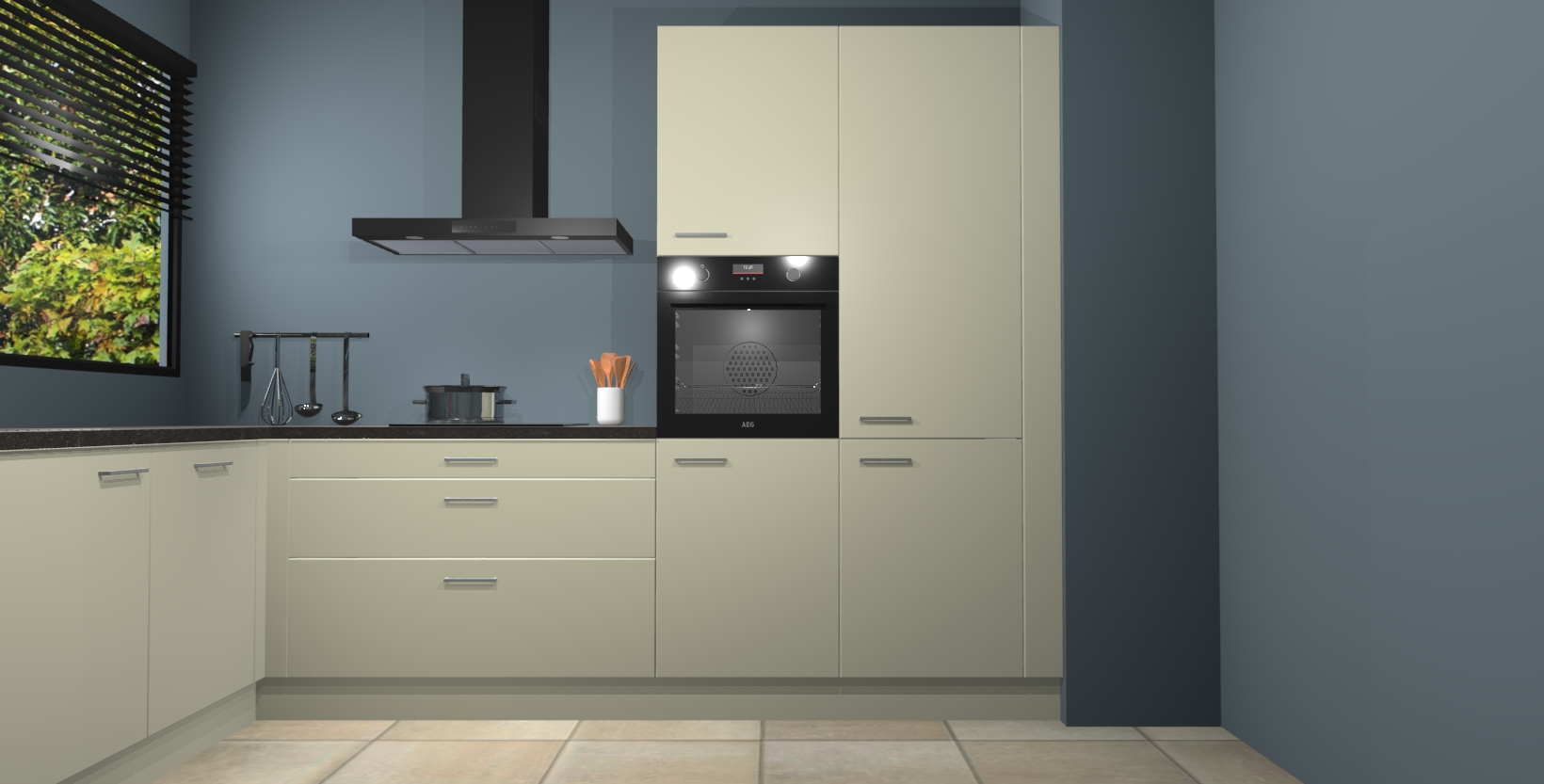 Met een modern, tijdloos design en ruime opslagruimte, zult u zich in no-time thuis voelen in uw nieuwe keuken. Uw leven wordt eenvoudiger met de soft-close deuren die voor het ultieme stille comfort zorgen - geen geluid dat u stoort terwijl u kookt. Ook is de keuken voorzien van 5 ingebouwde apparaten: een oven, inductie kookplaat, afzuigkap, vaatwasser en koelkast. Deze kunnen gemakkelijk na bestelling worden bijgewerkt naar AEG - waardoor uw luxe ervaring compleet is.