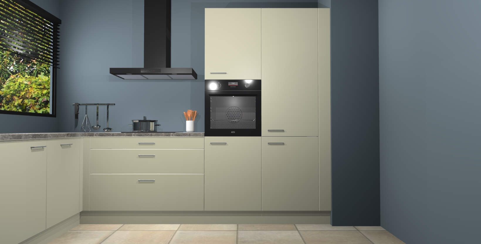 Met een modern, tijdloos design en ruime opslagruimte, zult u zich in no-time thuis voelen in uw nieuwe keuken. Uw leven wordt eenvoudiger met de soft-close deuren die voor het ultieme stille comfort zorgen - geen geluid dat u stoort terwijl u kookt. Ook is de keuken voorzien van 5 ingebouwde apparaten: een oven, inductie kookplaat, afzuigkap, vaatwasser en koelkast. Deze kunnen gemakkelijk na bestelling worden bijgewerkt naar AEG - waardoor uw luxe ervaring compleet is.