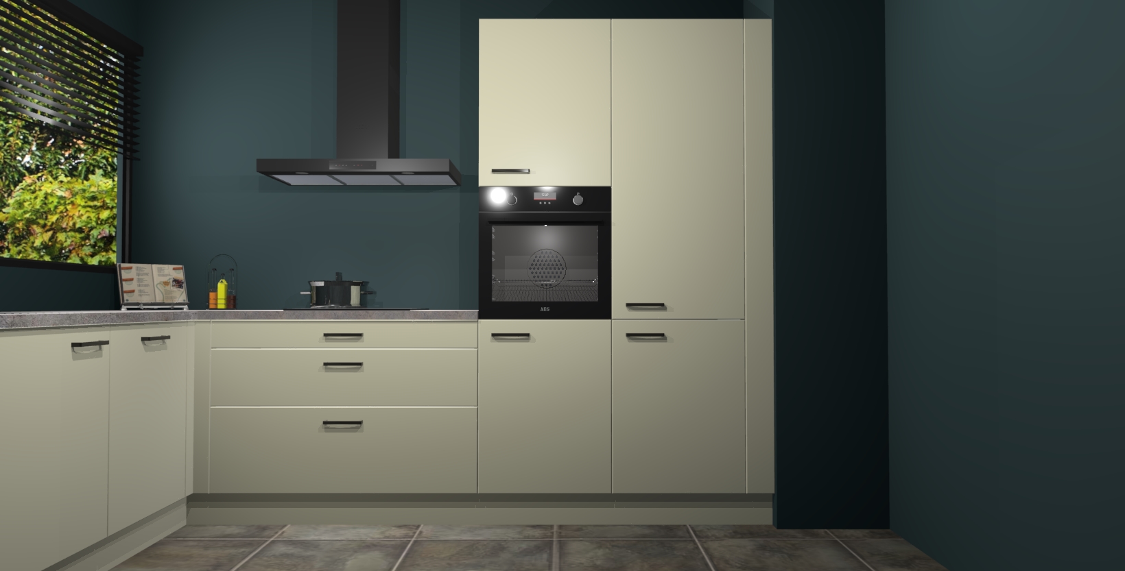 Met een modern, tijdloos design en ruime opslagruimte, zult u zich in no-time thuis voelen in uw nieuwe keuken. Uw leven wordt eenvoudiger met de soft-close deuren die voor het ultieme stille comfort zorgen - geen geluid dat u stoort terwijl u kookt. Ook is de keuken voorzien van 5 ingebouwde apparaten: een oven, inductie kookplaat, afzuigkap, vaatwasser en koelkast. Deze kunnen gemakkelijk na bestelling worden bijgewerkt naar AEG - waardoor uw luxe ervaring compleet is.