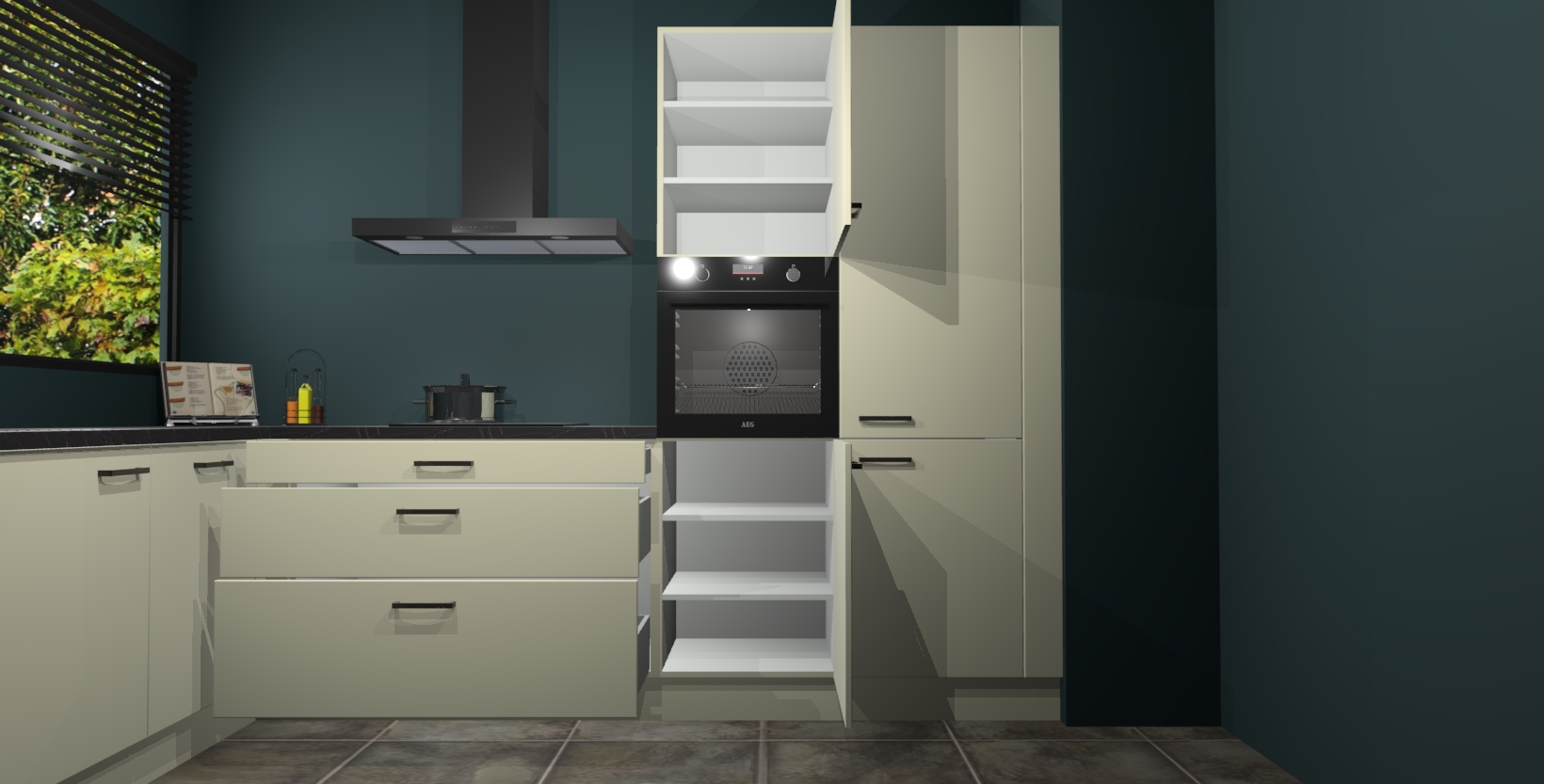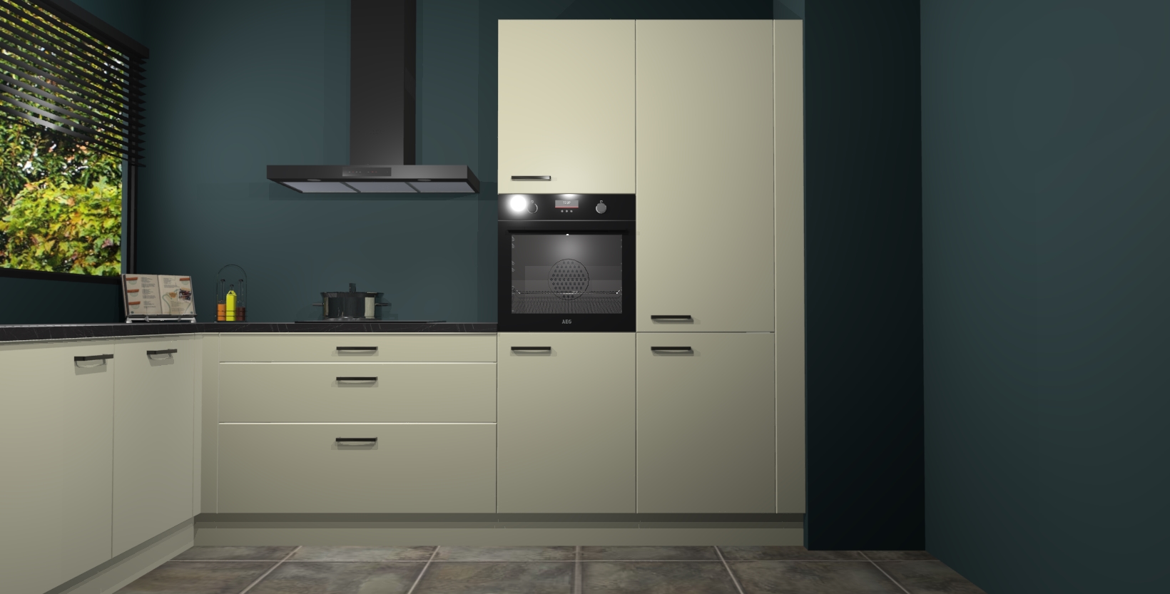 Met een modern, tijdloos design en ruime opslagruimte, zult u zich in no-time thuis voelen in uw nieuwe keuken. Uw leven wordt eenvoudiger met de soft-close deuren die voor het ultieme stille comfort zorgen - geen geluid dat u stoort terwijl u kookt. Ook is de keuken voorzien van 5 ingebouwde apparaten: een oven, inductie kookplaat, afzuigkap, vaatwasser en koelkast. Deze kunnen gemakkelijk na bestelling worden bijgewerkt naar AEG - waardoor uw luxe ervaring compleet is.