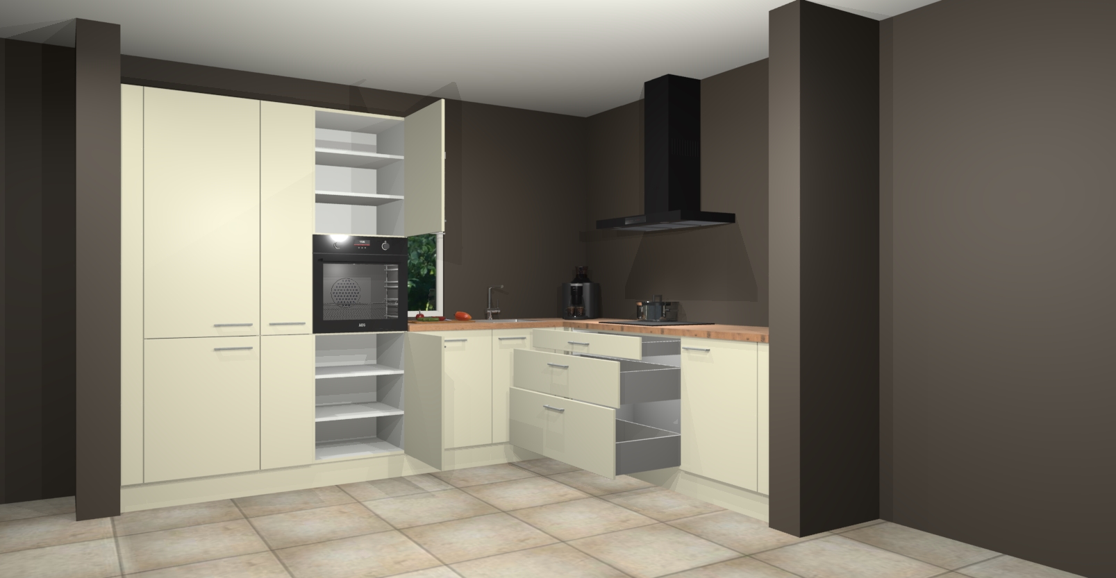 Inclusief plinten, stelpoten en werkblad