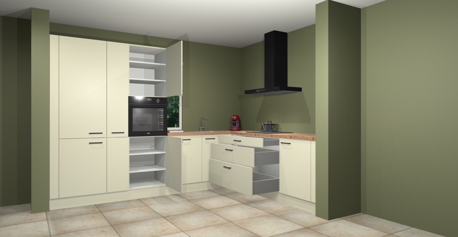 Inclusief plinten, stelpoten en werkblad