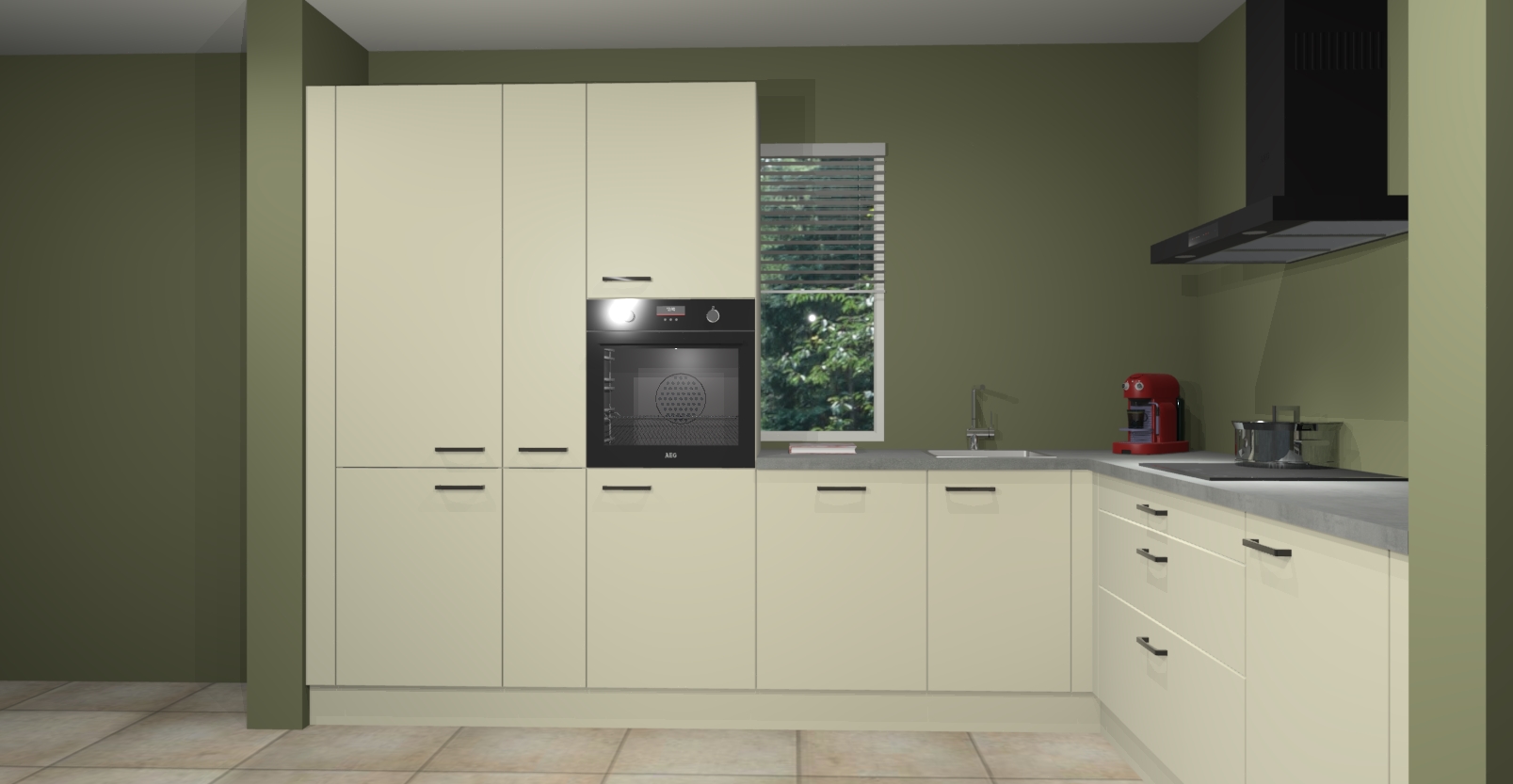 Met een modern, tijdloos design en ruime opslagruimte, zult u zich in no-time thuis voelen in uw nieuwe keuken. Uw leven wordt eenvoudiger met de soft-close deuren die voor het ultieme stille comfort zorgen - geen geluid dat u stoort terwijl u kookt. Ook is de keuken voorzien van 5 ingebouwde apparaten: een oven, inductie kookplaat, afzuigkap, vaatwasser en koelkast. Deze kunnen gemakkelijk na bestelling worden bijgewerkt naar AEG - waardoor uw luxe ervaring compleet is.