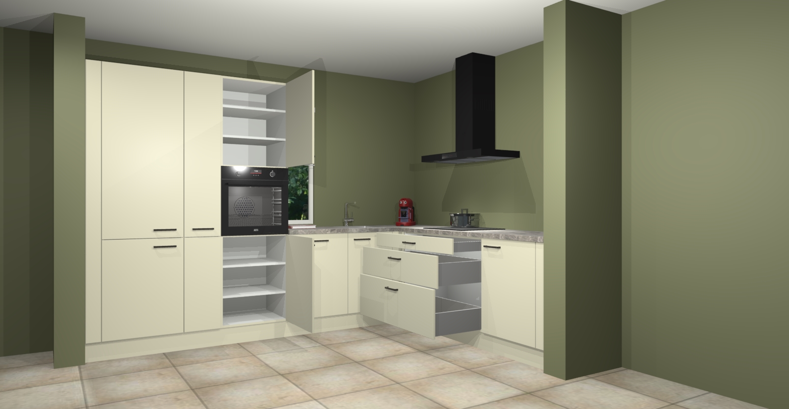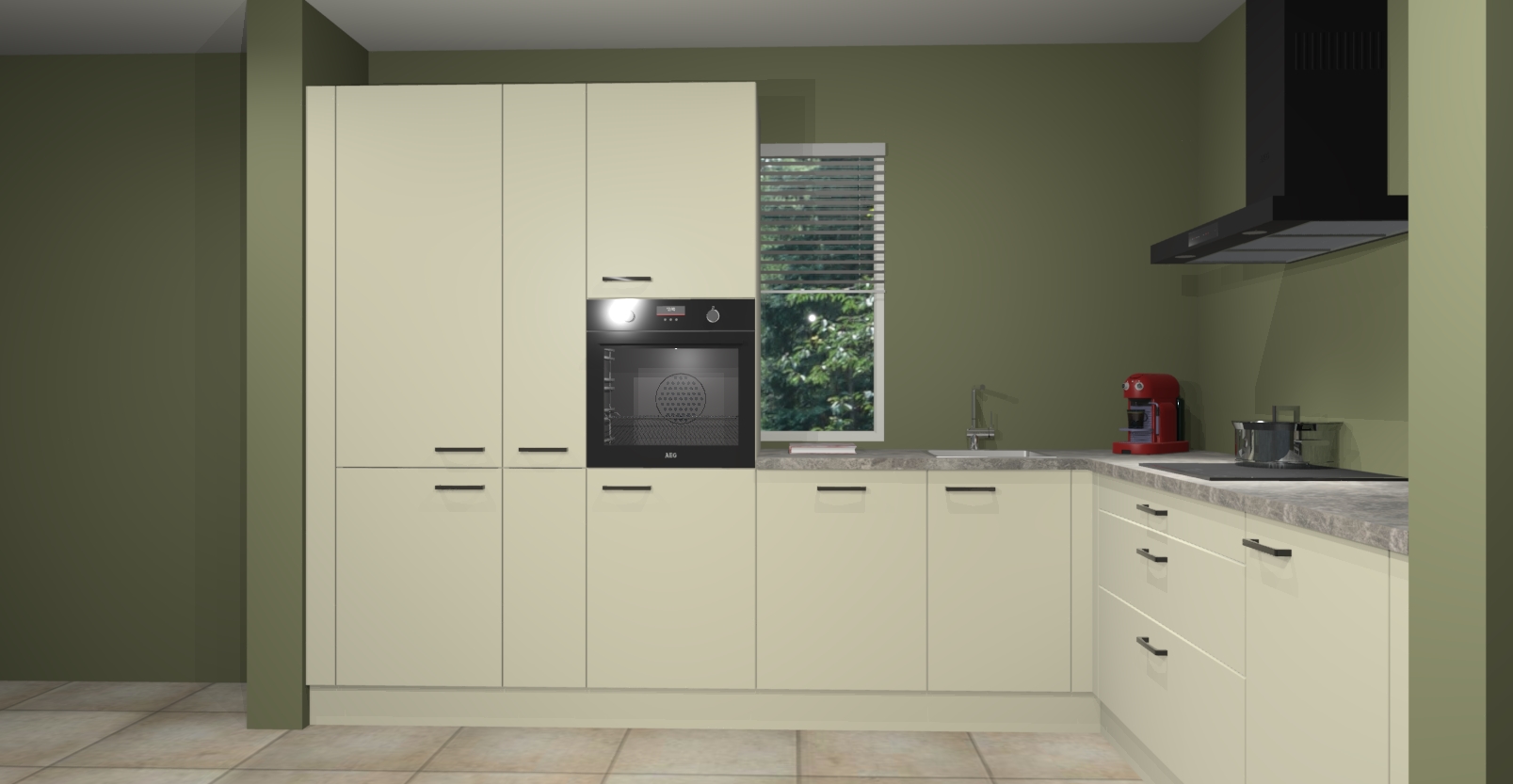 Met een modern, tijdloos design en ruime opslagruimte, zult u zich in no-time thuis voelen in uw nieuwe keuken. Uw leven wordt eenvoudiger met de soft-close deuren die voor het ultieme stille comfort zorgen - geen geluid dat u stoort terwijl u kookt. Ook is de keuken voorzien van 5 ingebouwde apparaten: een oven, inductie kookplaat, afzuigkap, vaatwasser en koelkast. Deze kunnen gemakkelijk na bestelling worden bijgewerkt naar AEG - waardoor uw luxe ervaring compleet is.