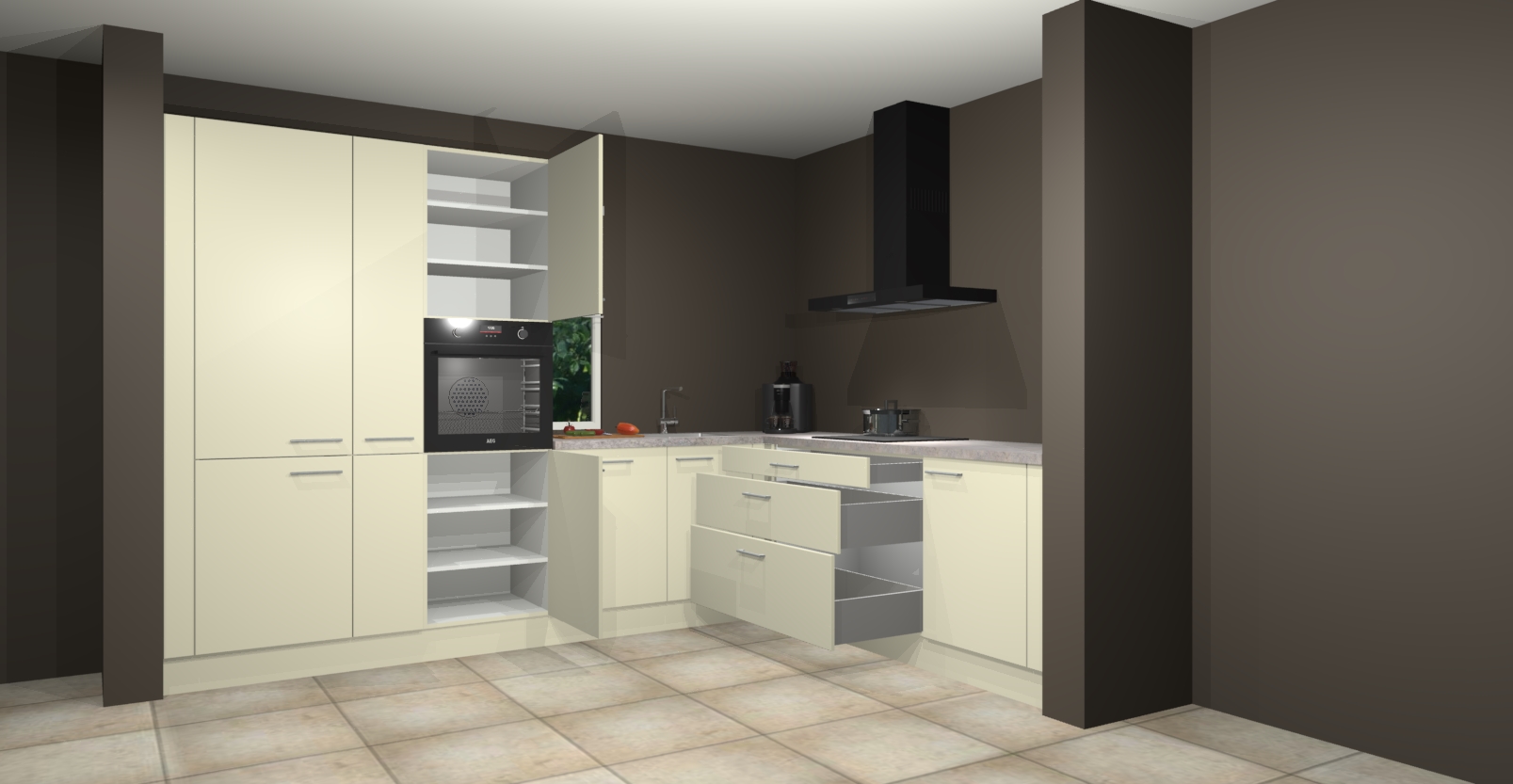 Inclusief plinten, stelpoten en werkblad