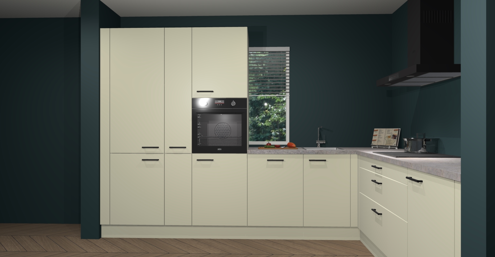 Met een modern, tijdloos design en ruime opslagruimte, zult u zich in no-time thuis voelen in uw nieuwe keuken. Uw leven wordt eenvoudiger met de soft-close deuren die voor het ultieme stille comfort zorgen - geen geluid dat u stoort terwijl u kookt. Ook is de keuken voorzien van 5 ingebouwde apparaten: een oven, inductie kookplaat, afzuigkap, vaatwasser en koelkast. Deze kunnen gemakkelijk na bestelling worden bijgewerkt naar AEG - waardoor uw luxe ervaring compleet is.