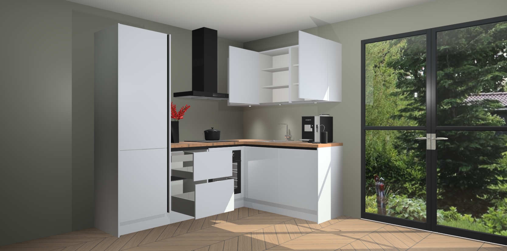 Als extra werd de prijs zo laag mogelijk vastgesteld, zonder aan de kwaliteit te raken. Zo heb je gegarandeerde Duitse keukenkwaliteit waarmee je jarenlang plezier beleeft aan het ontwerp. En dat alles wordt gecombineerd met een supersnelle service van maar liefst 7 weken!