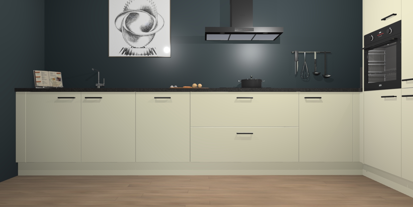 Inclusief plinten, stelpoten en werkblad