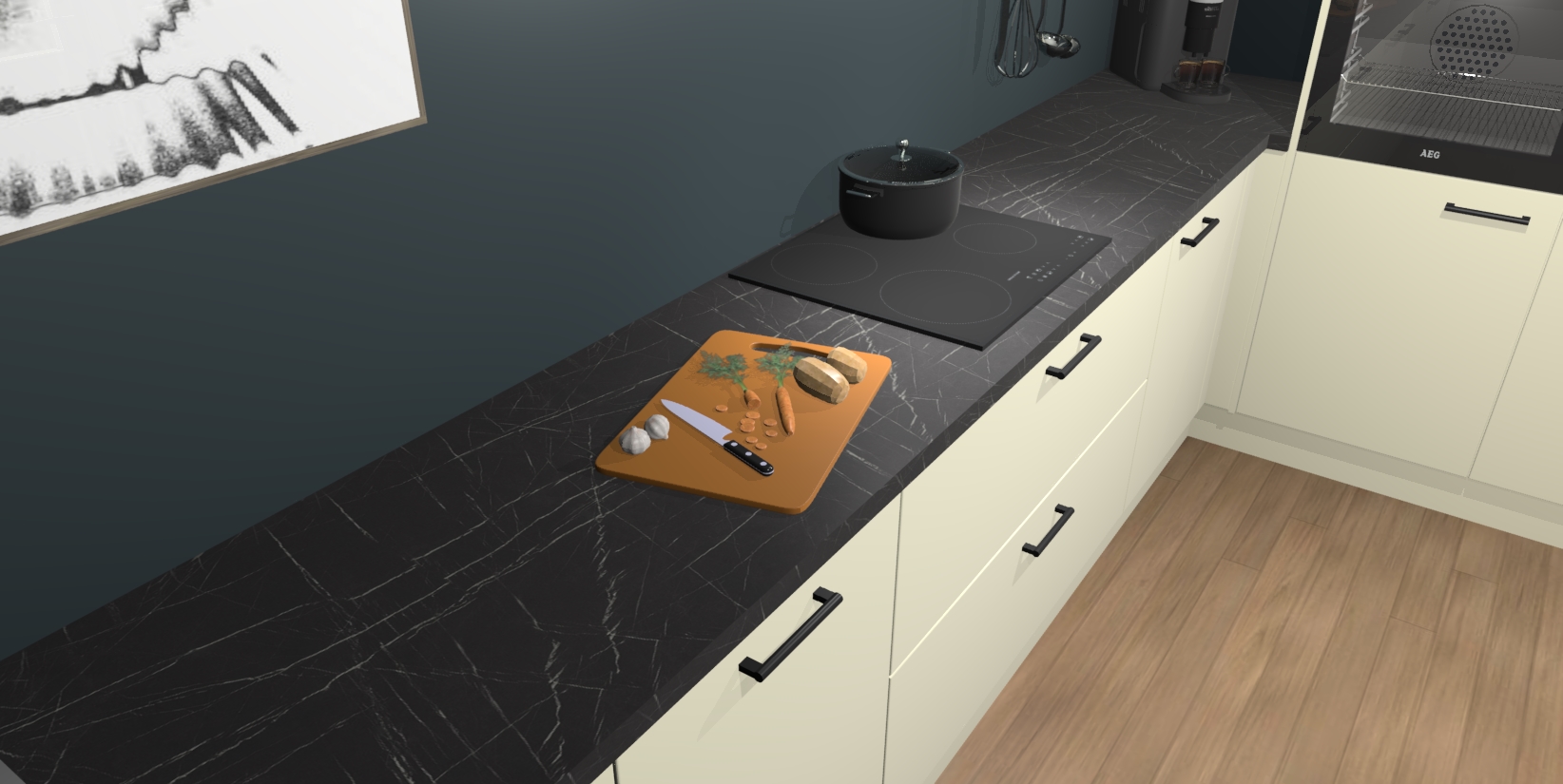 In deze box zijn alle kleuren verzameld van de deuren en werkbladen. Vraag de gratis kleurenbox aan en kijk thuis rustig verder!