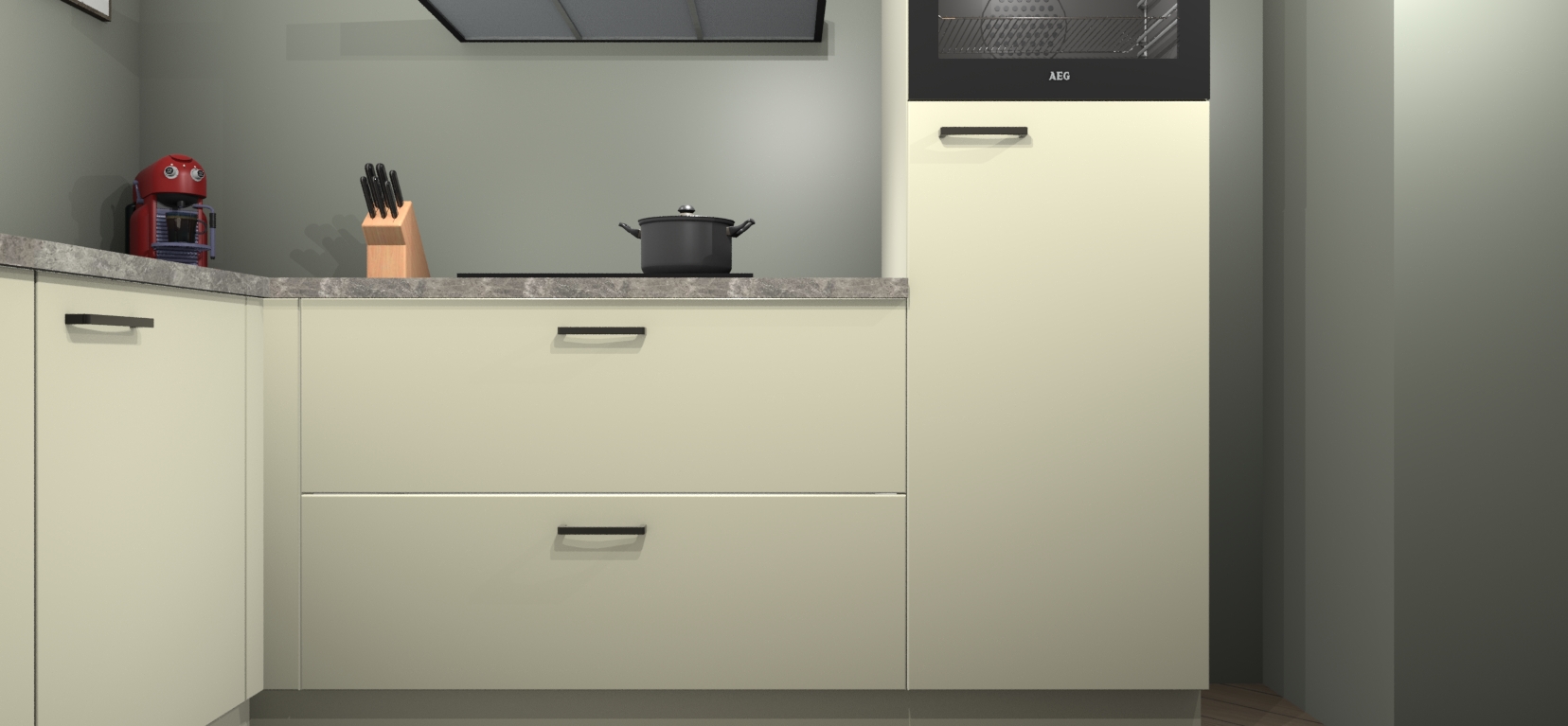In deze box zijn alle kleuren verzameld van de deuren en werkbladen. Vraag de gratis kleurenbox aan en kijk thuis rustig verder!