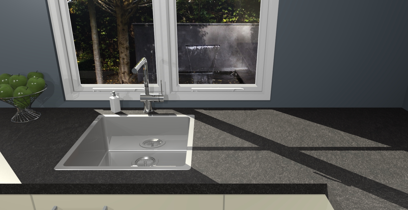 • De spoelbak is nog niet in gevreesd. Dit dient tijdens het werk gedaan te worden