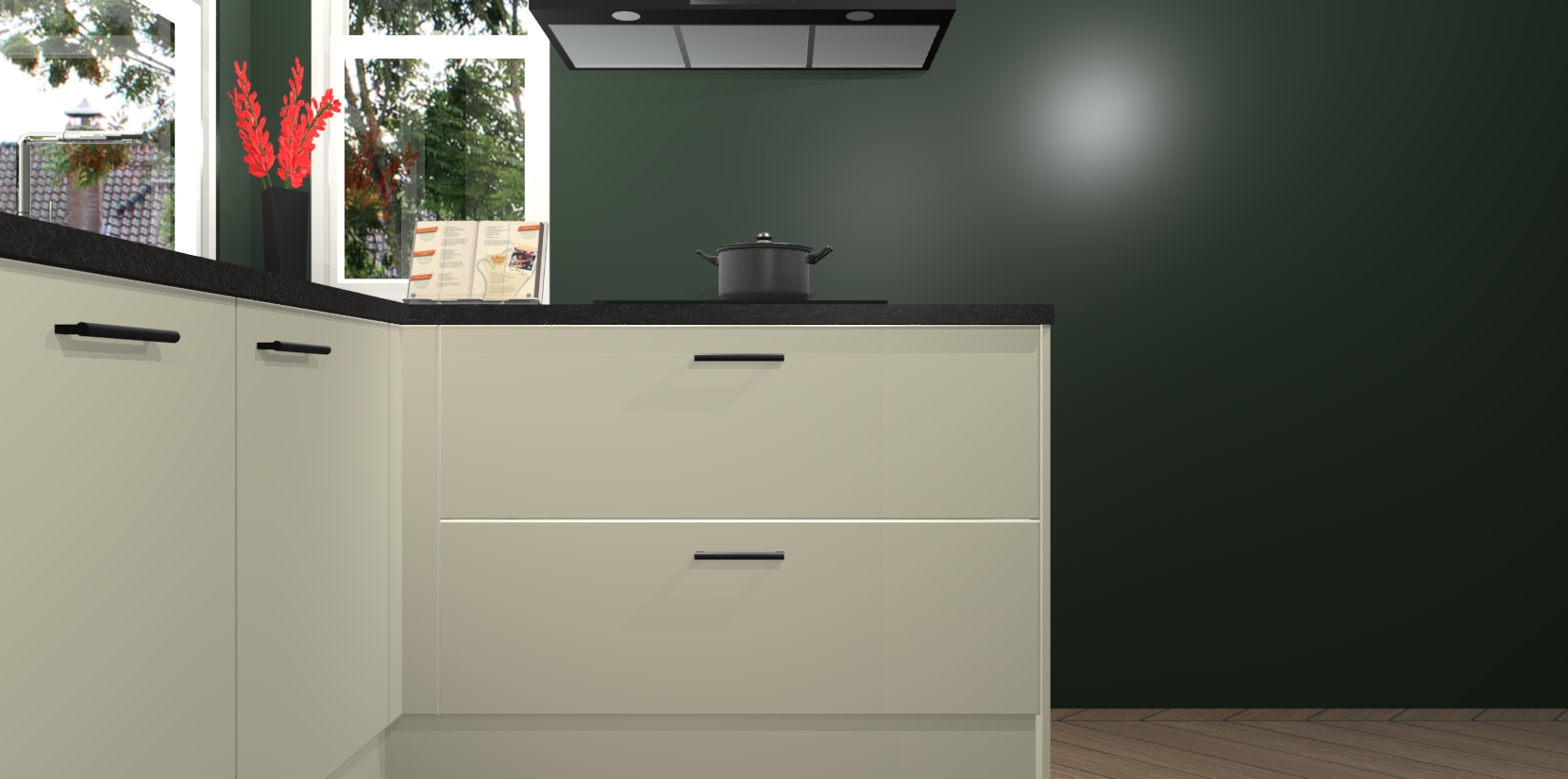 In deze box zijn alle kleuren verzameld van de deuren en werkbladen. Vraag de gratis kleurenbox aan en kijk thuis rustig verder!