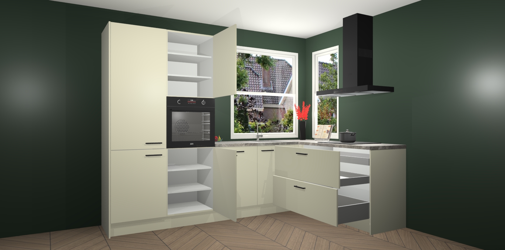 In deze box zijn alle kleuren verzameld van de deuren en werkbladen. Vraag de gratis kleurenbox aan en kijk thuis rustig verder!