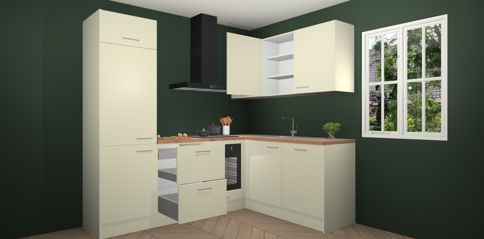 In deze box zijn alle kleuren verzameld van de deuren en werkbladen. Vraag de gratis kleurenbox aan en kijk thuis rustig verder!