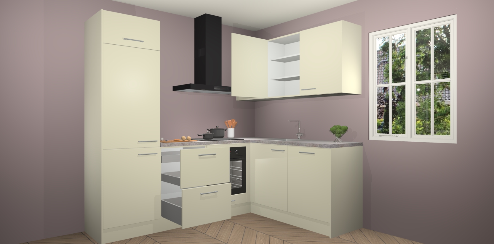 Inclusief plinten, stelpoten en werkblad