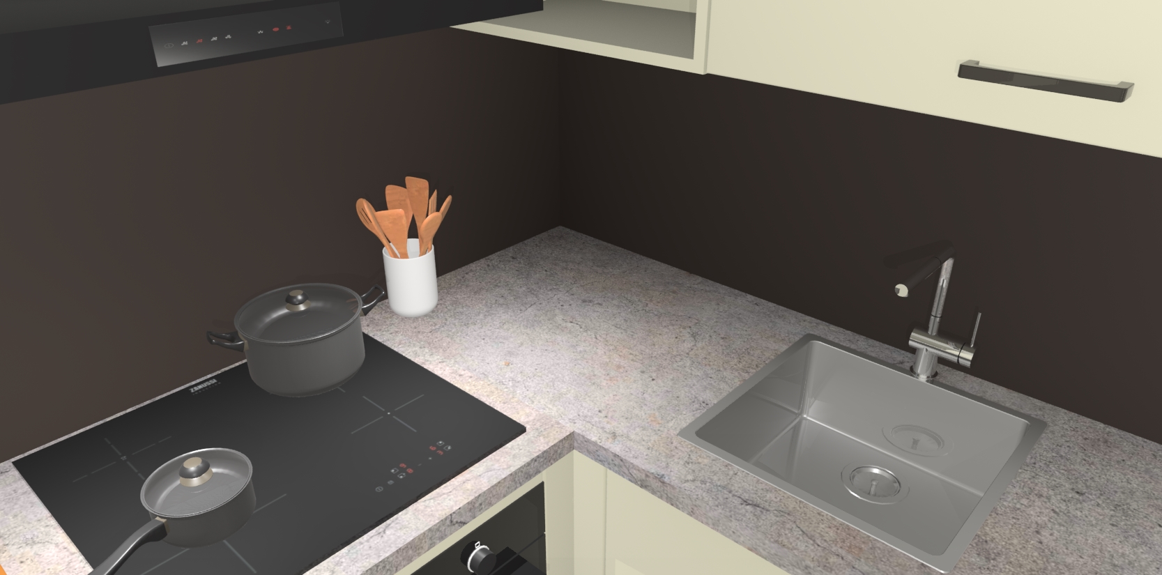 - Uitsparing van kookplaat, spoelbak en kraan dient u zelf te verzorgen.