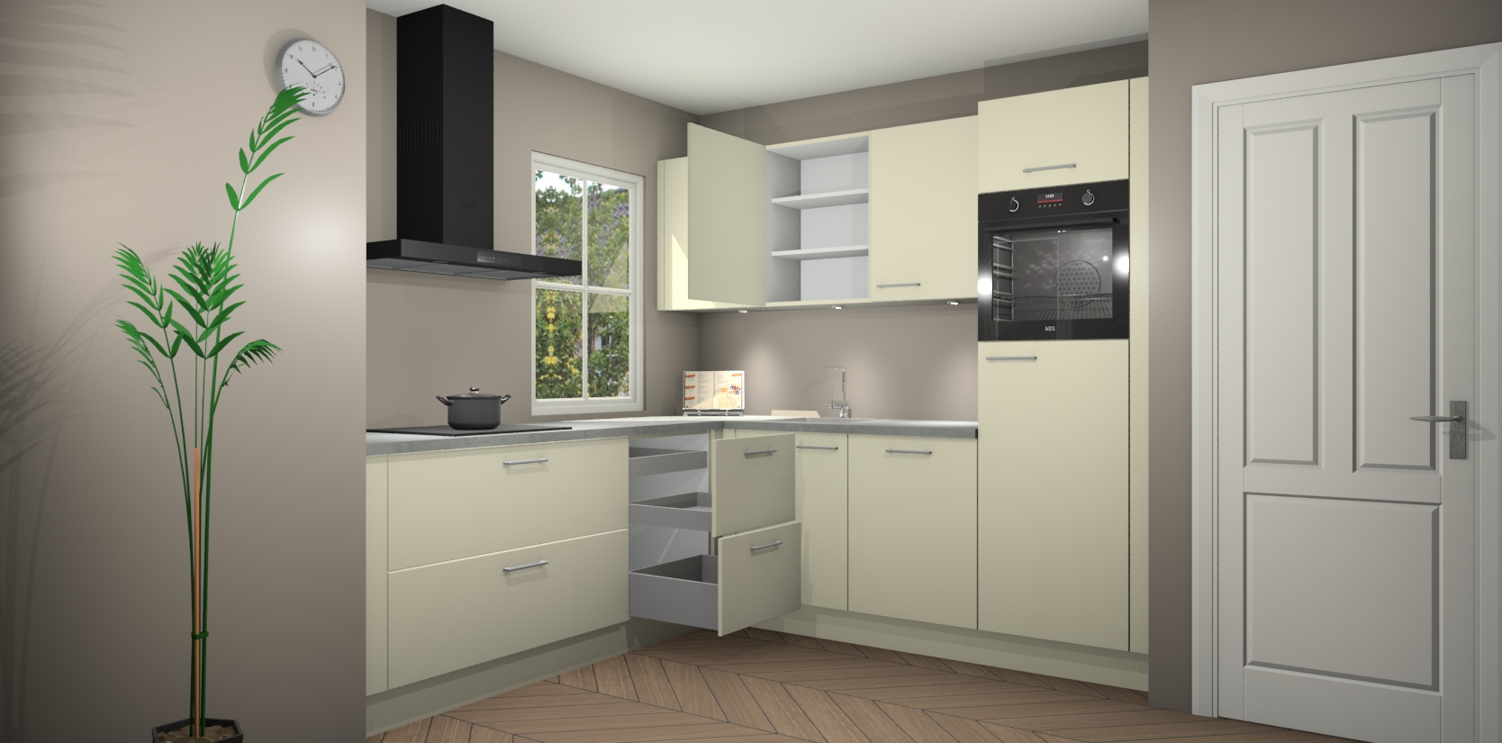 In deze box zijn alle kleuren verzameld van de deuren en werkbladen. Vraag de gratis kleurenbox aan en kijk thuis rustig verder!