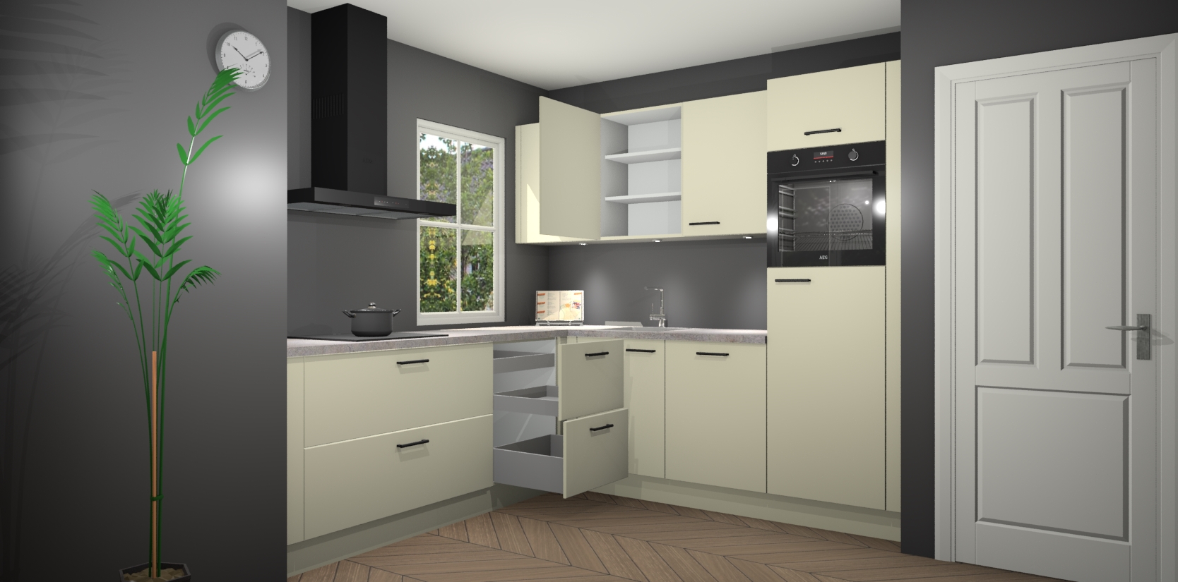 - Bij een hoekwerkblad zijn de hoeken in gevreesd en op maat gemaakt