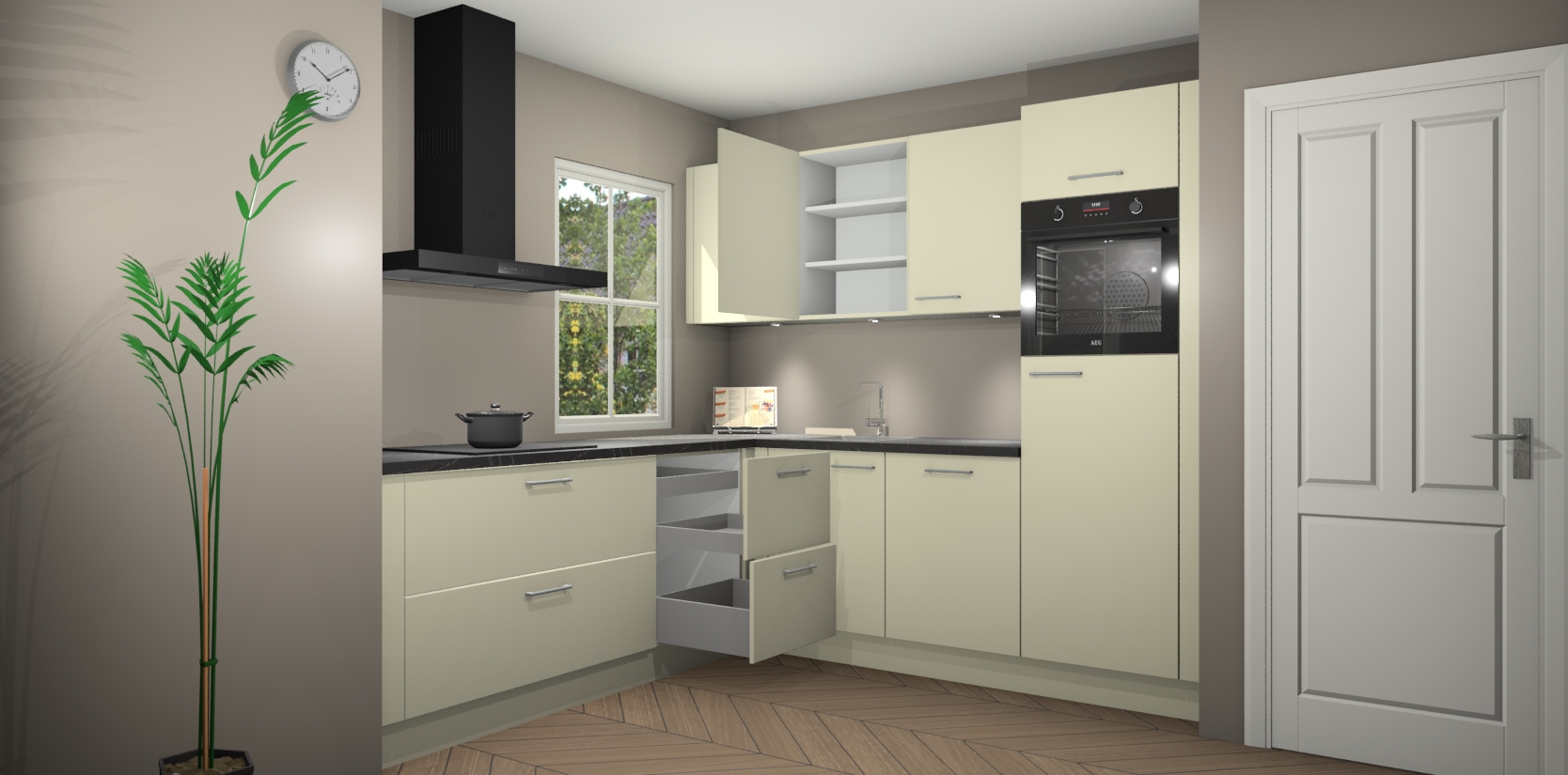 In deze box zijn alle kleuren verzameld van de deuren en werkbladen. Vraag de gratis kleurenbox aan en kijk thuis rustig verder!
