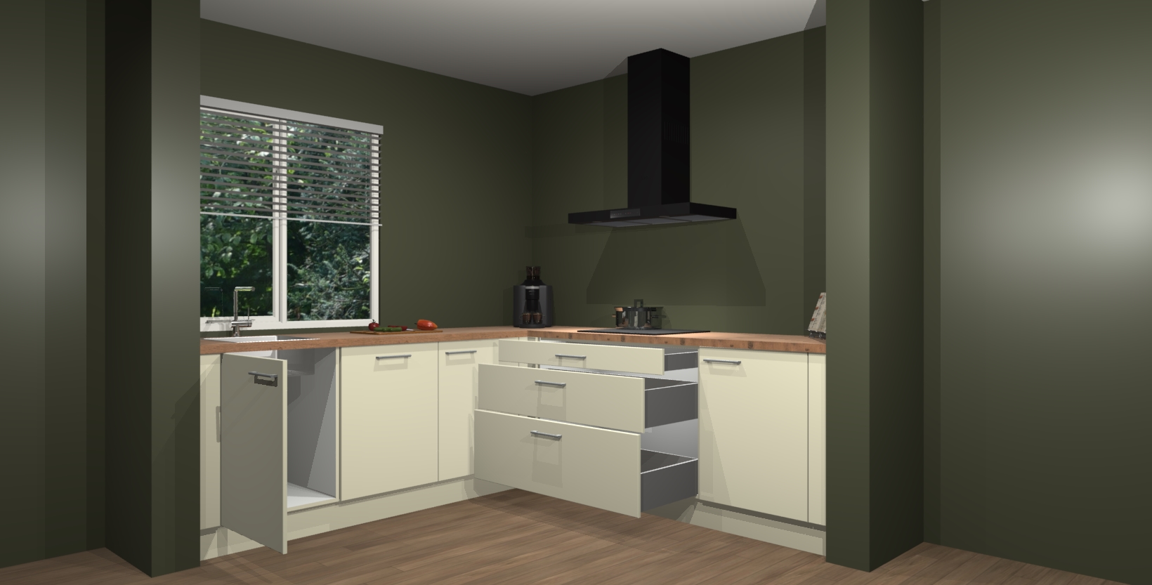 Inclusief plinten, stelpoten en werkblad