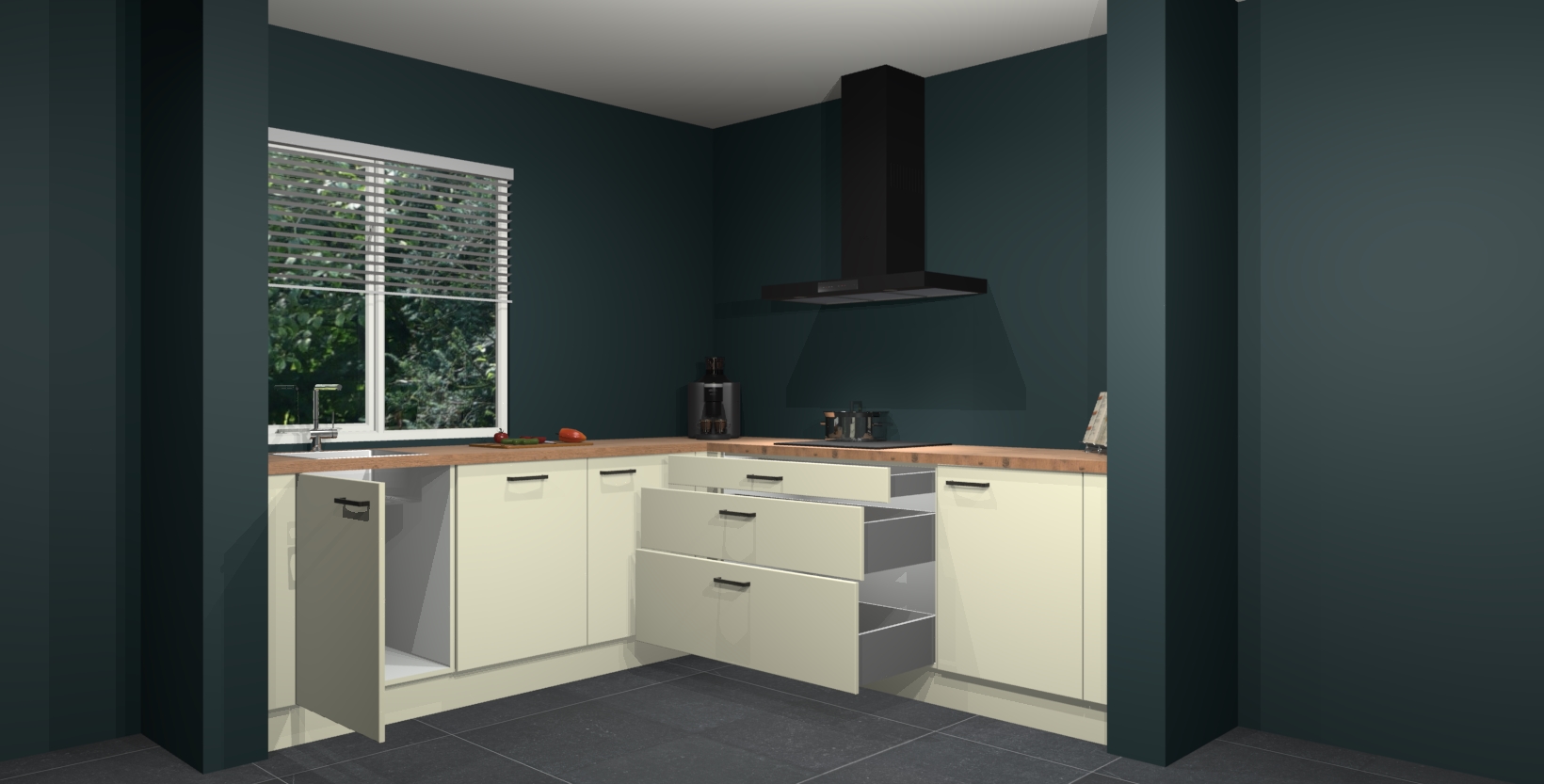 In deze box zijn alle kleuren verzameld van de deuren en werkbladen. Vraag de gratis kleurenbox aan en kijk thuis rustig verder!