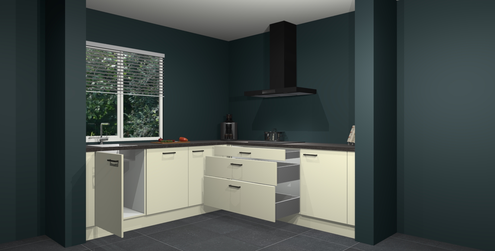 - Bij een hoekwerkblad zijn de hoeken in gevreesd en op maat gemaakt