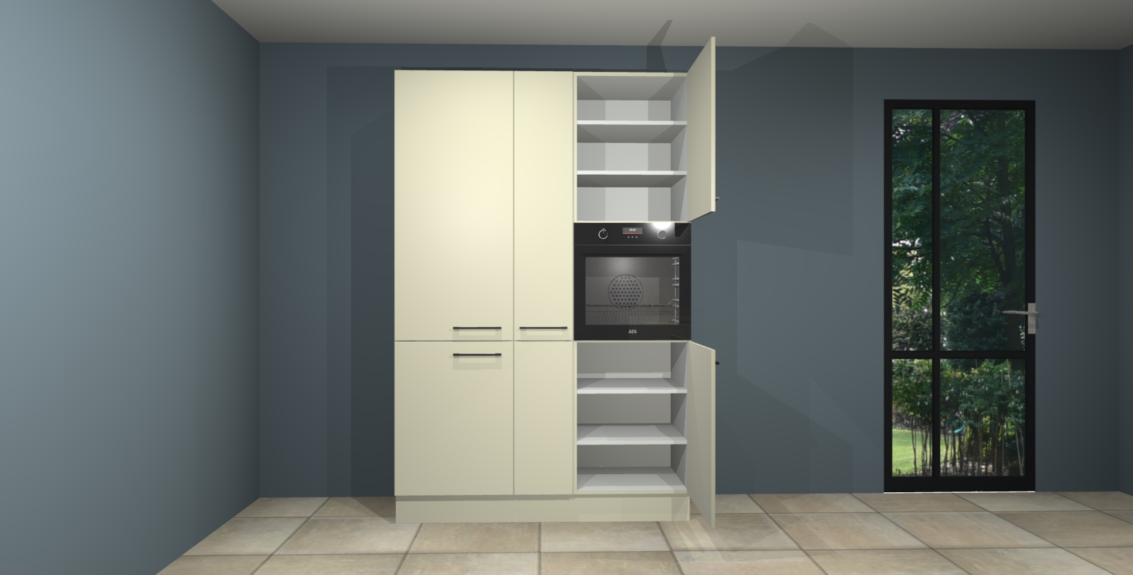 Met een modern, tijdloos design en ruime opslagruimte, zult u zich in no-time thuis voelen in uw nieuwe keuken. Uw leven wordt eenvoudiger met de soft-close deuren die voor het ultieme stille comfort zorgen - geen geluid dat u stoort terwijl u kookt. Ook is de keuken voorzien van 5 ingebouwde apparaten: een oven, inductie kookplaat, afzuigkap, vaatwasser en koelkast. Deze kunnen gemakkelijk na bestelling worden bijgewerkt naar AEG - waardoor uw luxe ervaring compleet is.