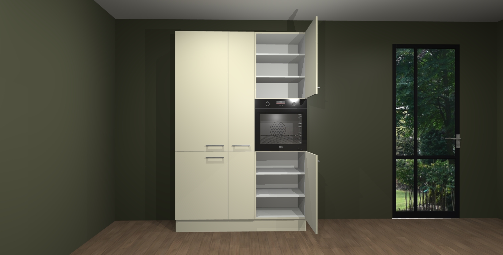Met een modern, tijdloos design en ruime opslagruimte, zult u zich in no-time thuis voelen in uw nieuwe keuken. Uw leven wordt eenvoudiger met de soft-close deuren die voor het ultieme stille comfort zorgen - geen geluid dat u stoort terwijl u kookt. Ook is de keuken voorzien van 5 ingebouwde apparaten: een oven, inductie kookplaat, afzuigkap, vaatwasser en koelkast. Deze kunnen gemakkelijk na bestelling worden bijgewerkt naar AEG - waardoor uw luxe ervaring compleet is.