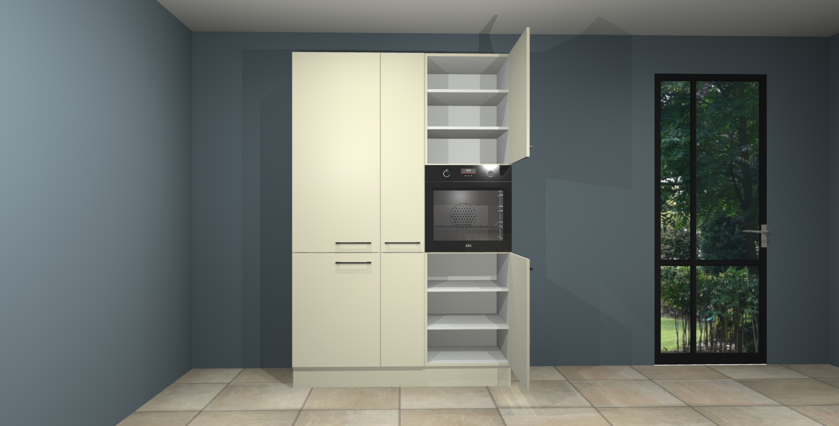 Met een modern, tijdloos design en ruime opslagruimte, zult u zich in no-time thuis voelen in uw nieuwe keuken. Uw leven wordt eenvoudiger met de soft-close deuren die voor het ultieme stille comfort zorgen - geen geluid dat u stoort terwijl u kookt. Ook is de keuken voorzien van 5 ingebouwde apparaten: een oven, inductie kookplaat, afzuigkap, vaatwasser en koelkast. Deze kunnen gemakkelijk na bestelling worden bijgewerkt naar AEG - waardoor uw luxe ervaring compleet is.