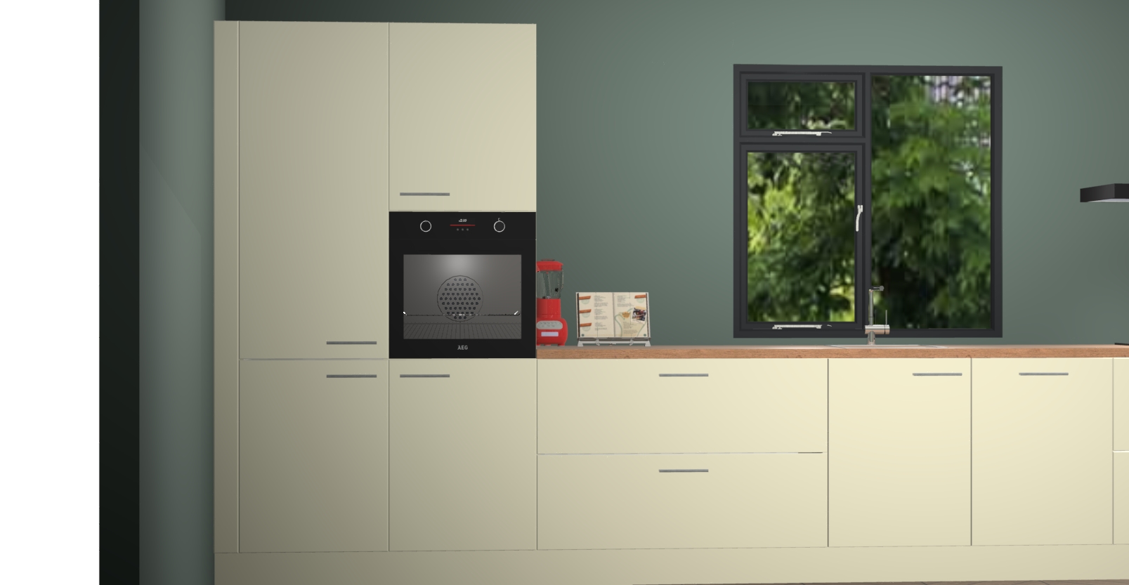 De Magnolia keuken Lille wordt geleverd met vijf inbouwapparaten - een oven, inductiekookplaat, afzuigkap, vaatwasser en koelkast. Maar dat is nog niet alles! Na bestelling kunnen deze apparaten eenvoudig worden geüpgraded naar premium AEG-apparatuur. Bovendien is er zelfs de optie om de oven te vervangen door een combimagnetron of uw inductiekookplaat te vervangen door een kookplaat met geïntegreerde afzuiging.
