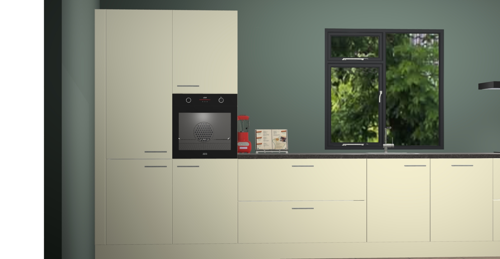 De Magnolia keuken Lille wordt geleverd met vijf inbouwapparaten - een oven, inductiekookplaat, afzuigkap, vaatwasser en koelkast. Maar dat is nog niet alles! Na bestelling kunnen deze apparaten eenvoudig worden geüpgraded naar premium AEG-apparatuur. Bovendien is er zelfs de optie om de oven te vervangen door een combimagnetron of uw inductiekookplaat te vervangen door een kookplaat met geïntegreerde afzuiging.