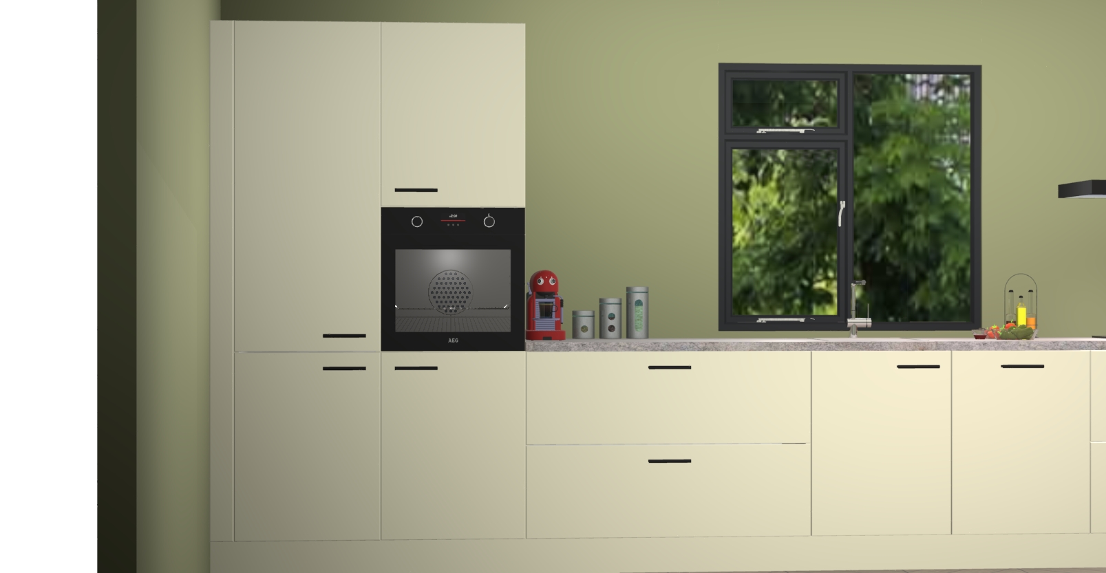 De Magnolia keuken Lille wordt geleverd met vijf inbouwapparaten - een oven, inductiekookplaat, afzuigkap, vaatwasser en koelkast. Maar dat is nog niet alles! Na bestelling kunnen deze apparaten eenvoudig worden geüpgraded naar premium AEG-apparatuur. Bovendien is er zelfs de optie om de oven te vervangen door een combimagnetron of uw inductiekookplaat te vervangen door een kookplaat met geïntegreerde afzuiging.