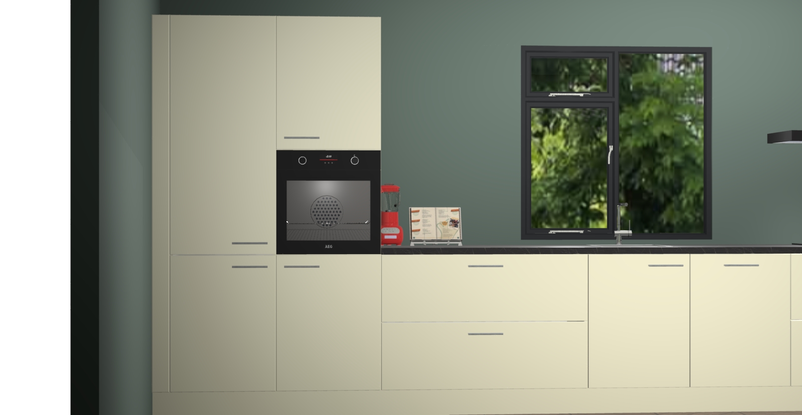 De Magnolia keuken Lille wordt geleverd met vijf inbouwapparaten - een oven, inductiekookplaat, afzuigkap, vaatwasser en koelkast. Maar dat is nog niet alles! Na bestelling kunnen deze apparaten eenvoudig worden geüpgraded naar premium AEG-apparatuur. Bovendien is er zelfs de optie om de oven te vervangen door een combimagnetron of uw inductiekookplaat te vervangen door een kookplaat met geïntegreerde afzuiging.