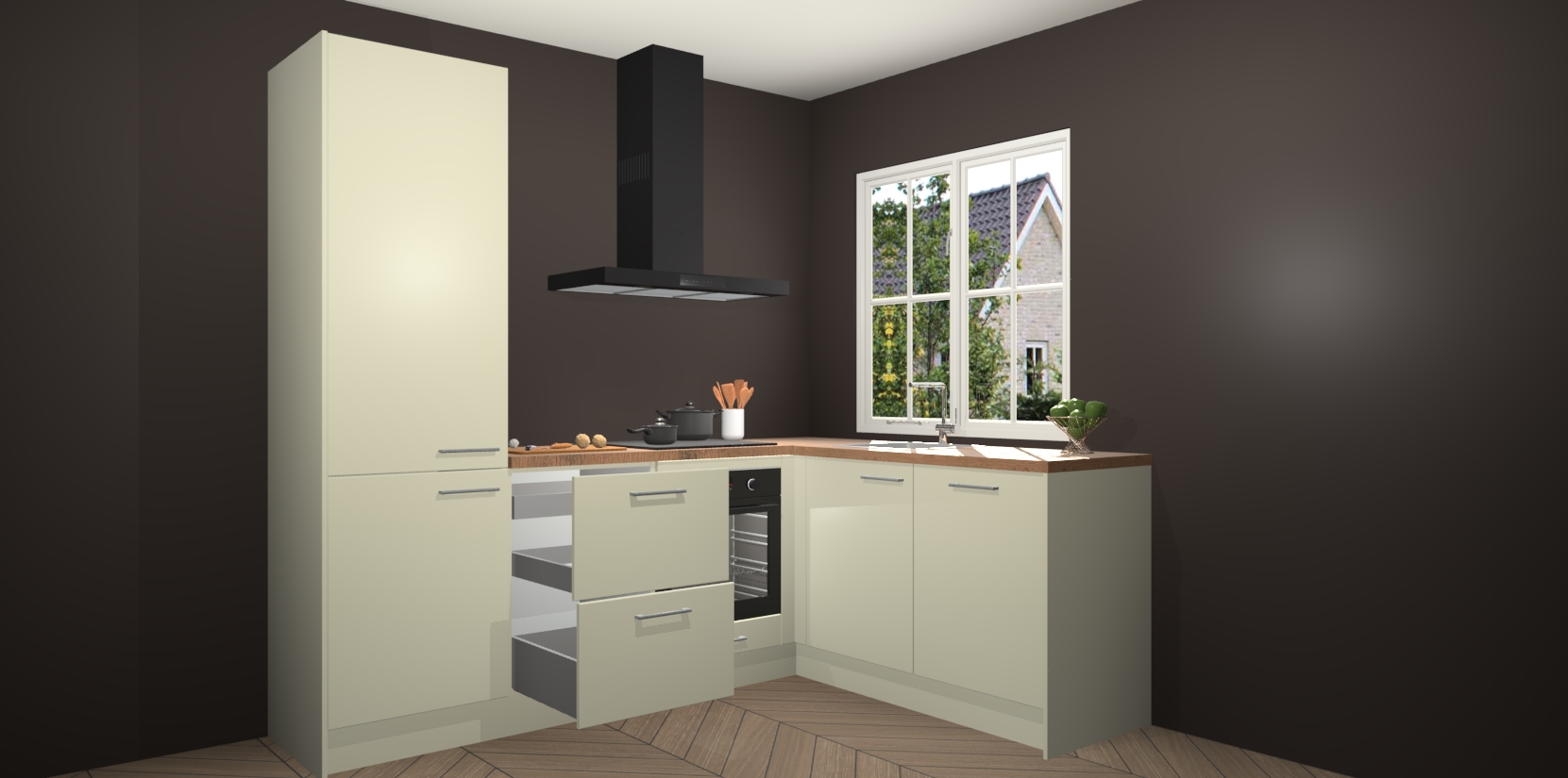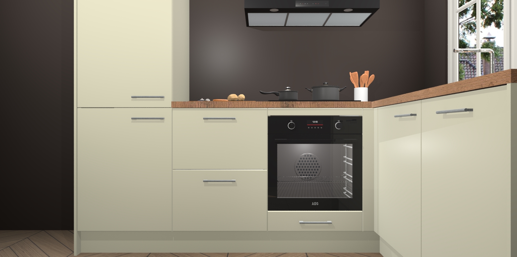 Inclusief plinten, stelpoten en werkblad