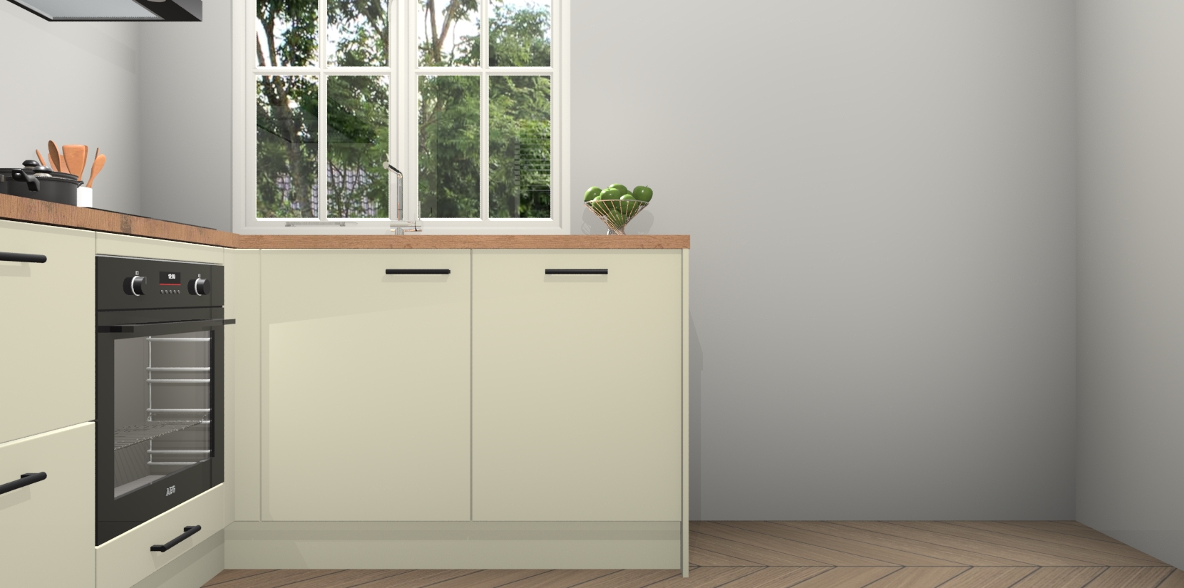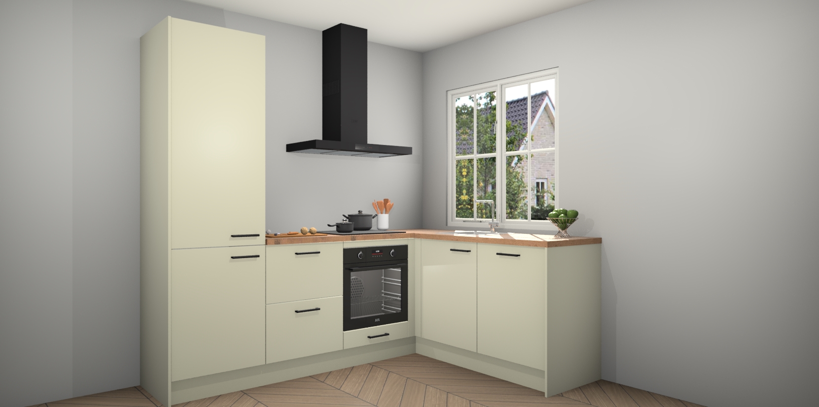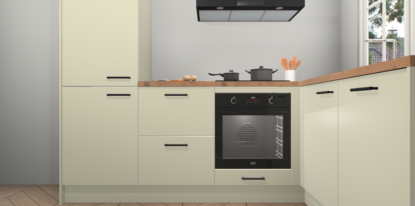 Inclusief plinten, stelpoten en werkblad