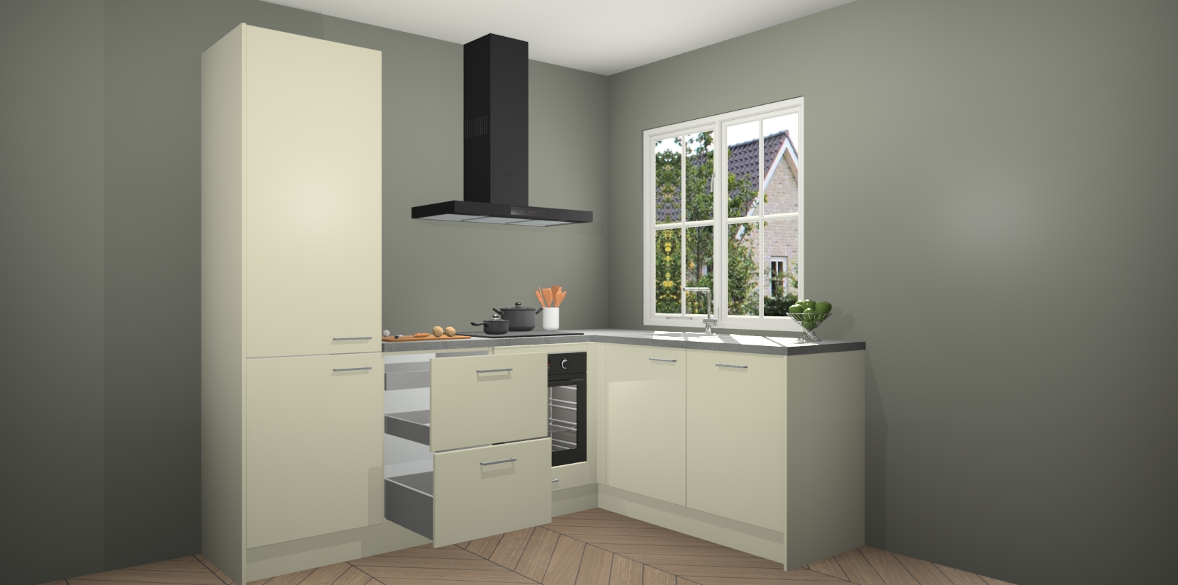 In deze box zijn alle kleuren verzameld van de deuren en werkbladen. Vraag de gratis kleurenbox aan en kijk thuis rustig verder!
