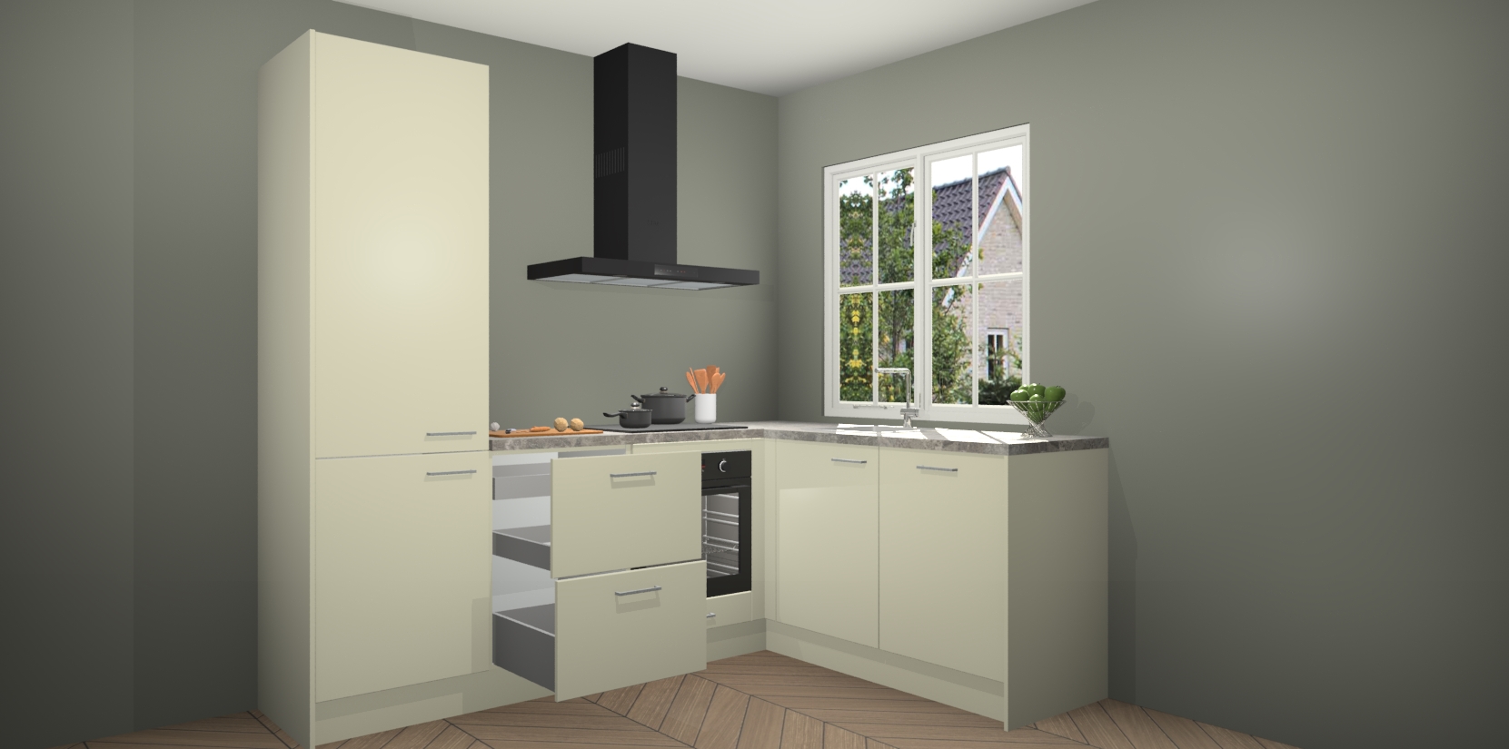 Inclusief plinten, stelpoten en werkblad