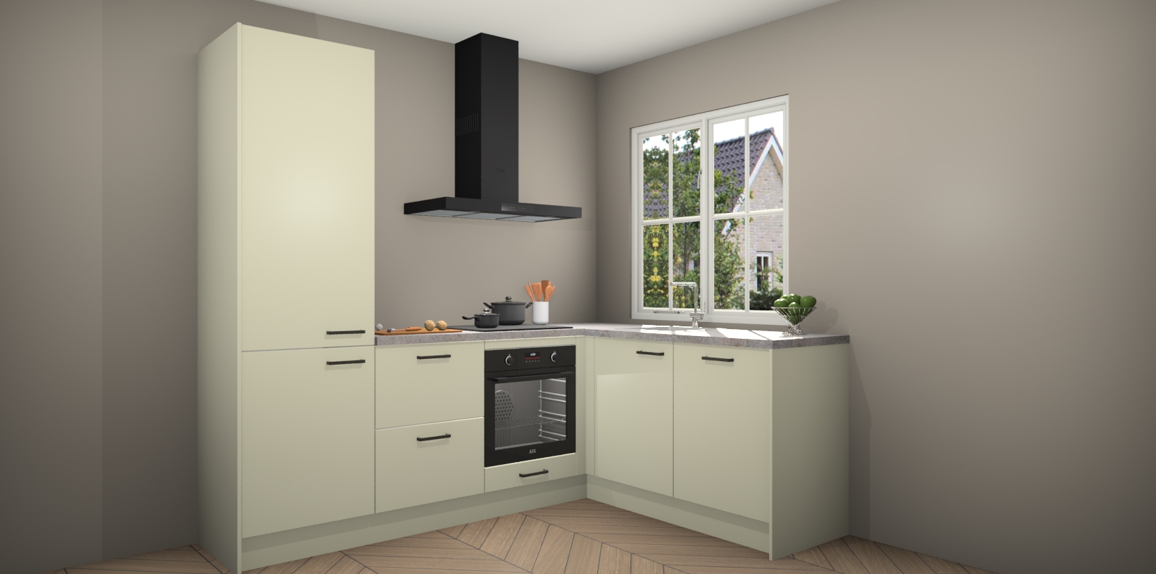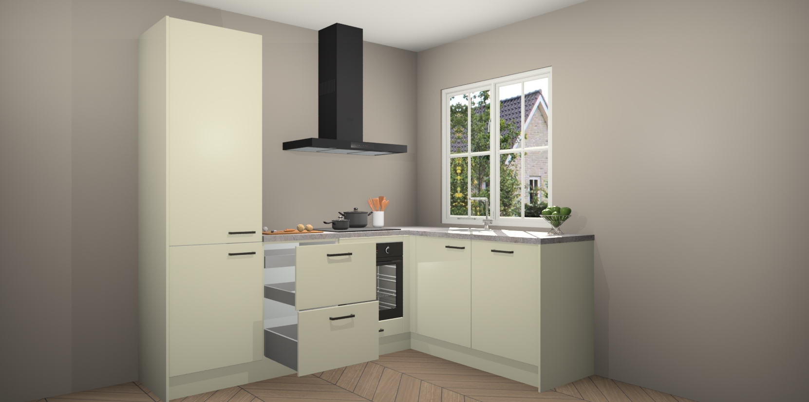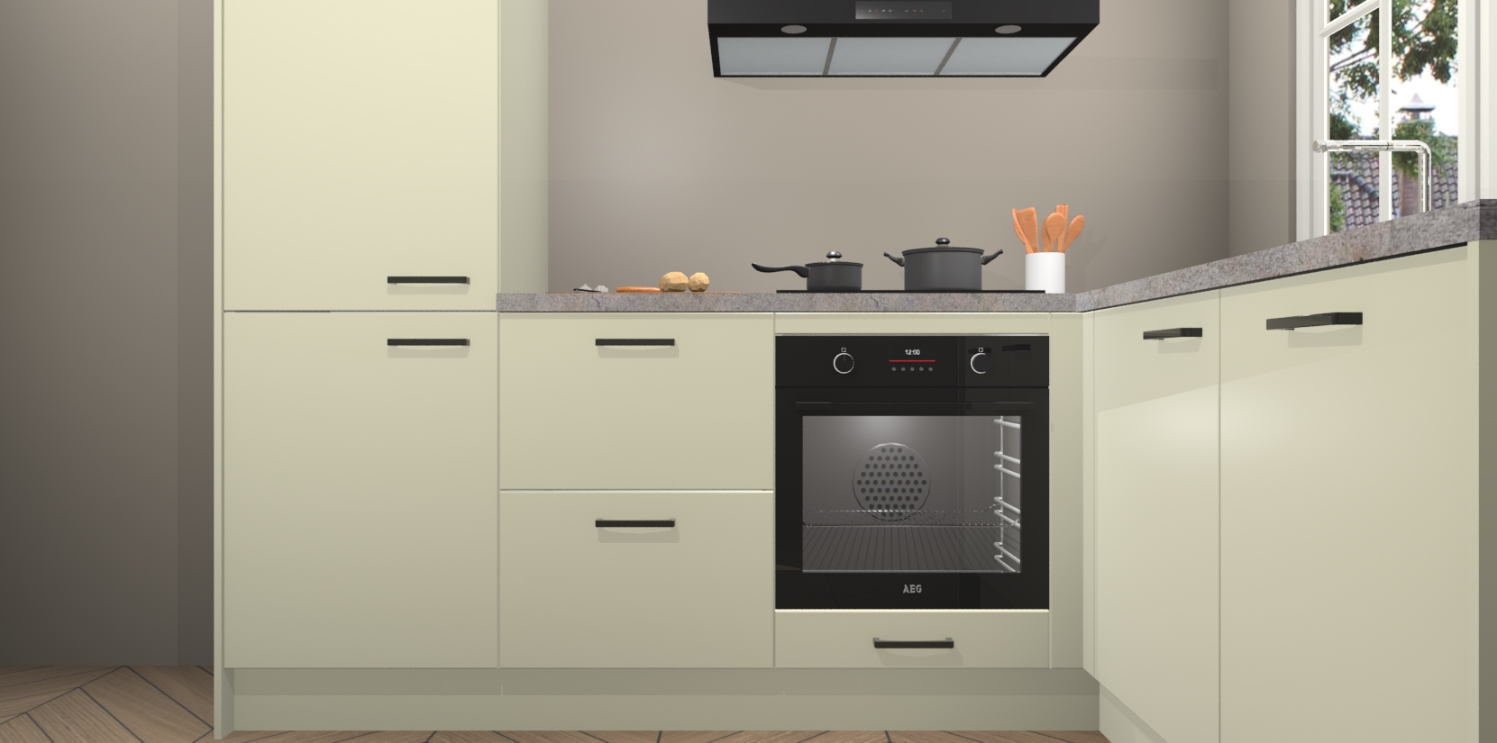 Inclusief plinten, stelpoten en werkblad