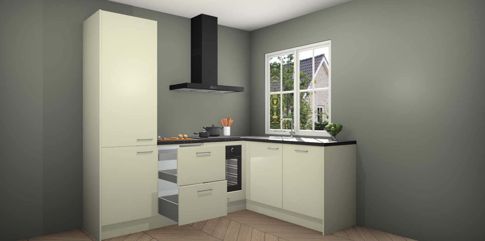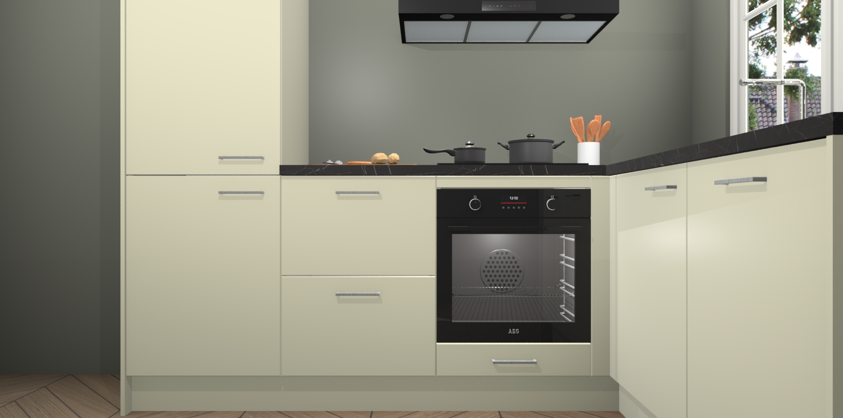 Inclusief plinten, stelpoten en werkblad
