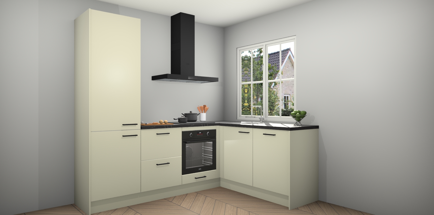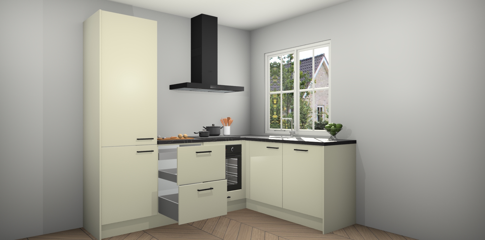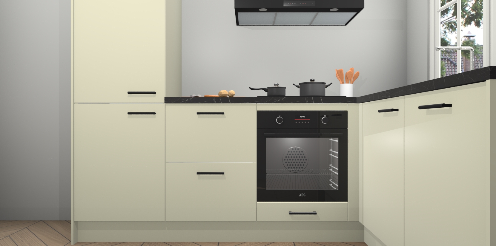 Inclusief plinten, stelpoten en werkblad
