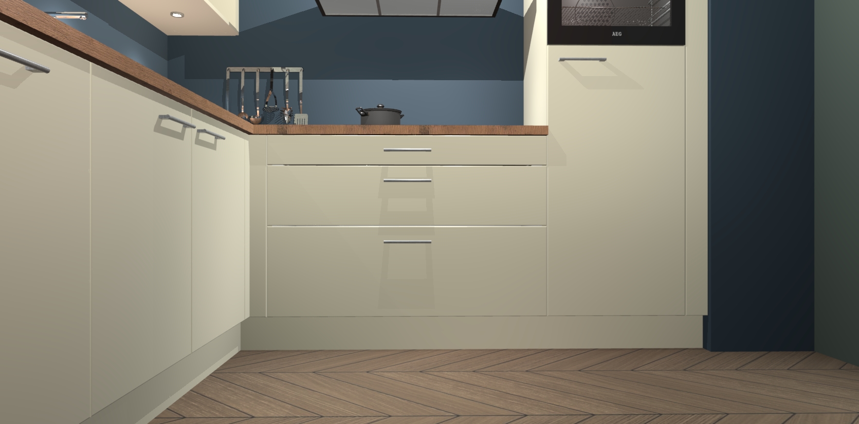 Inclusief plinten, stelpoten en werkblad