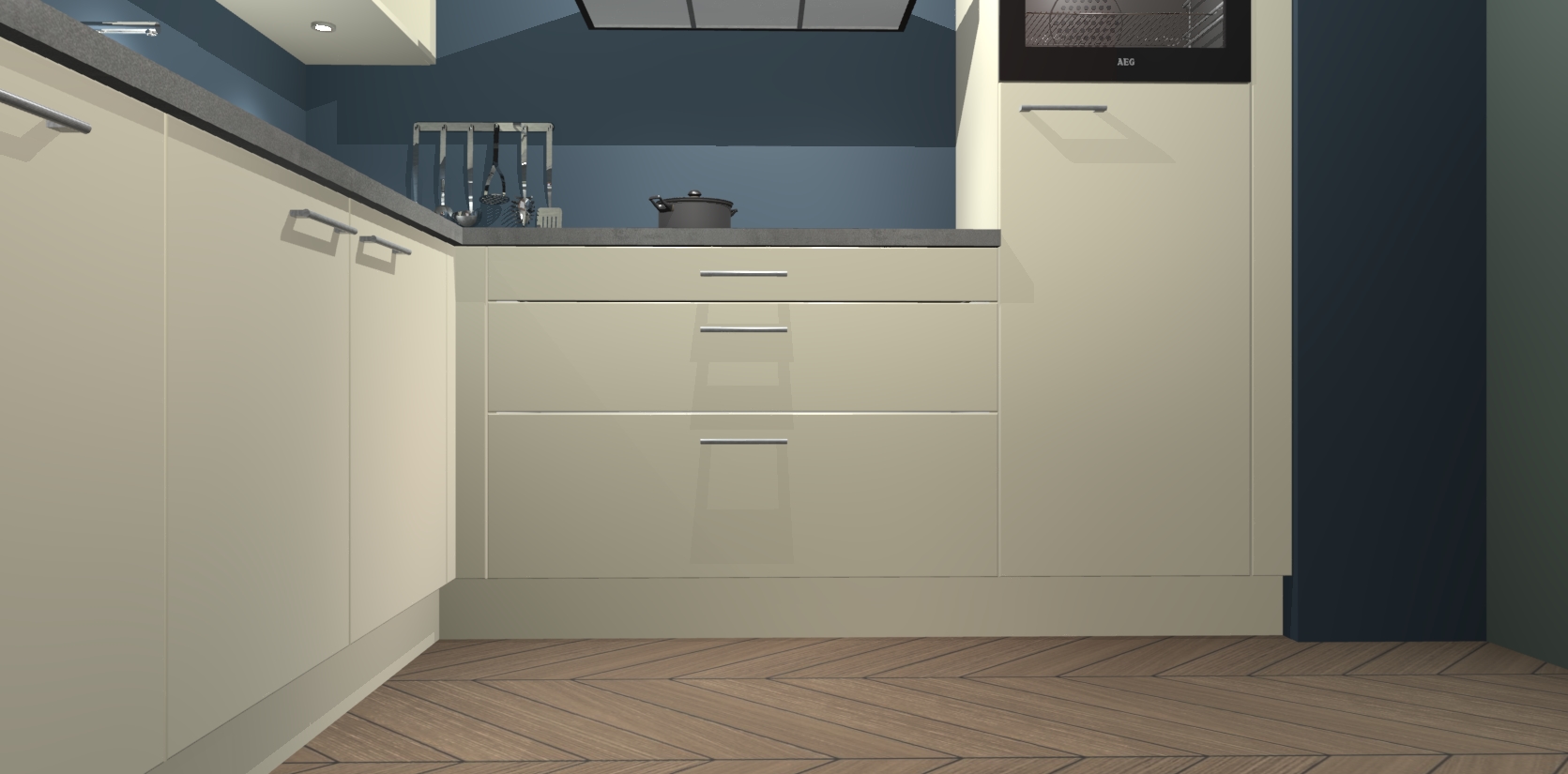Inclusief plinten, stelpoten en werkblad